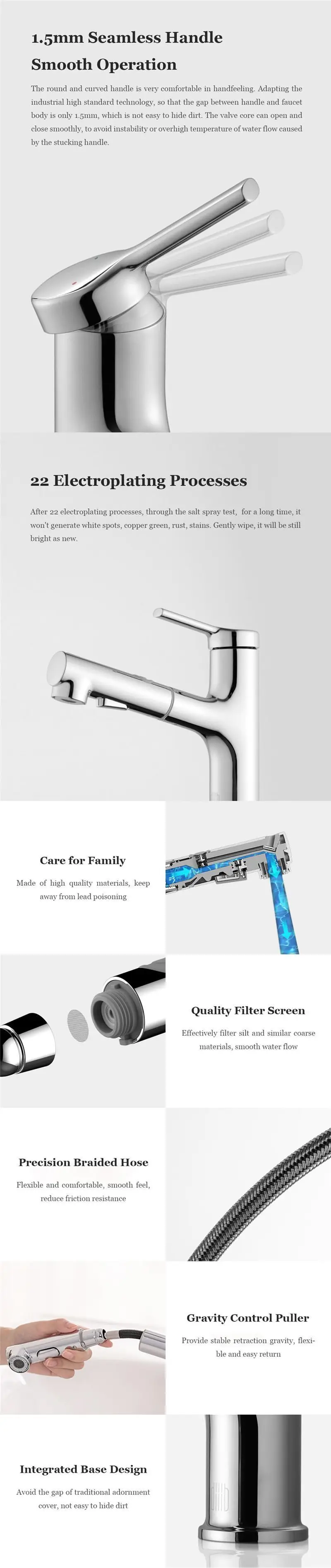 Этот кран не только улучшает эстетическое чувство и качество на основе традиционного бассейна крана, но и добавляет различные практические функции. Garglingspout элегантный дизайн и уменьшает контакт с бактериями. Это поможет вам легко мыть раковину с помощью вытяжного ополаскивателя.