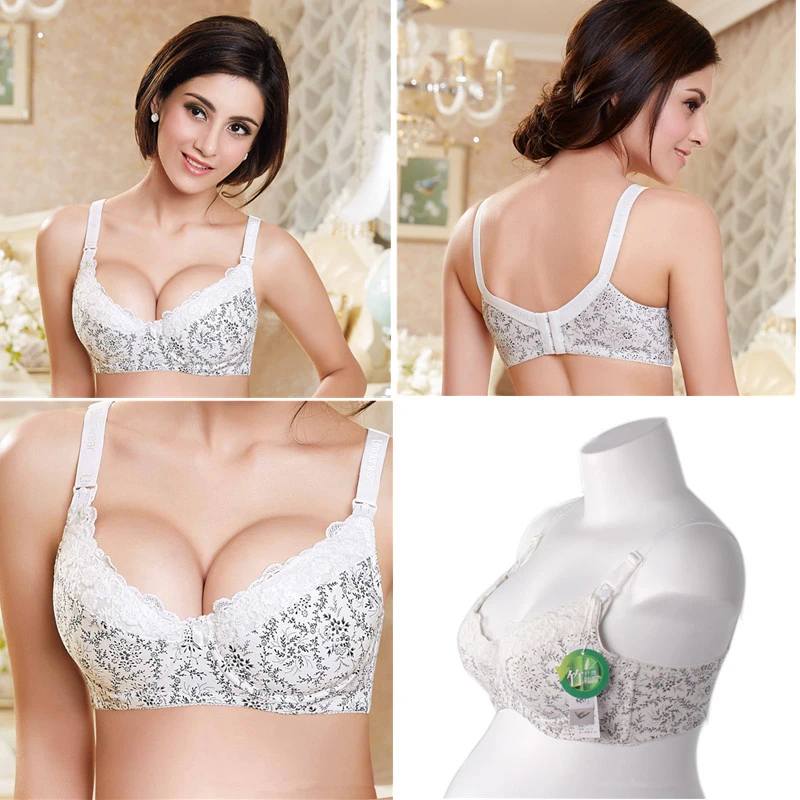 Бюстгальтер для беременных и кормящих из бамбукового волокна, Бюстгальтер для кормления для беременных женщин, кружевное нижнее белье с цветочным рисунком и проволокой, не провисает