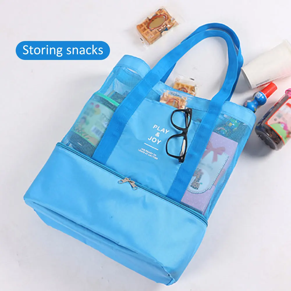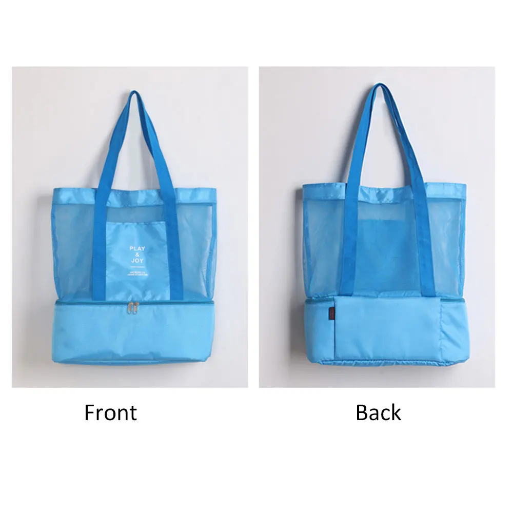 Вы будете наслаждаться удобством этой модной, легкой, холщовой и сетчатой пляжной сумки с дополнительным кулером