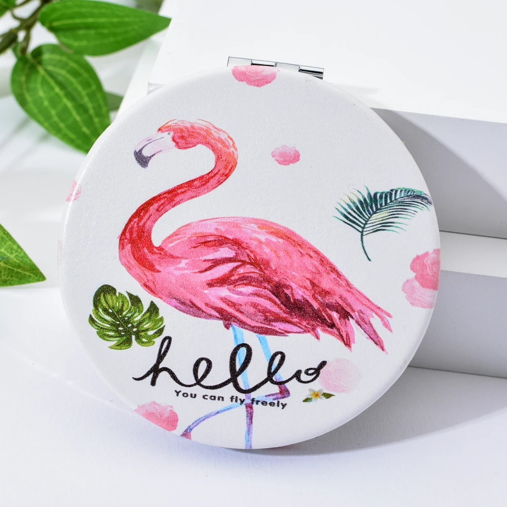 Бренд: Vicney Тип товара: зеркало для макияжа Стиль товара: Модный Материал: искусственная кожа Форма: круглый Узор: фламинго, животное Пол: для женщин и девочек Feture: малый размер, легкий вес и легко носить с собой Особенность 02: двустороннее зеркало, складное