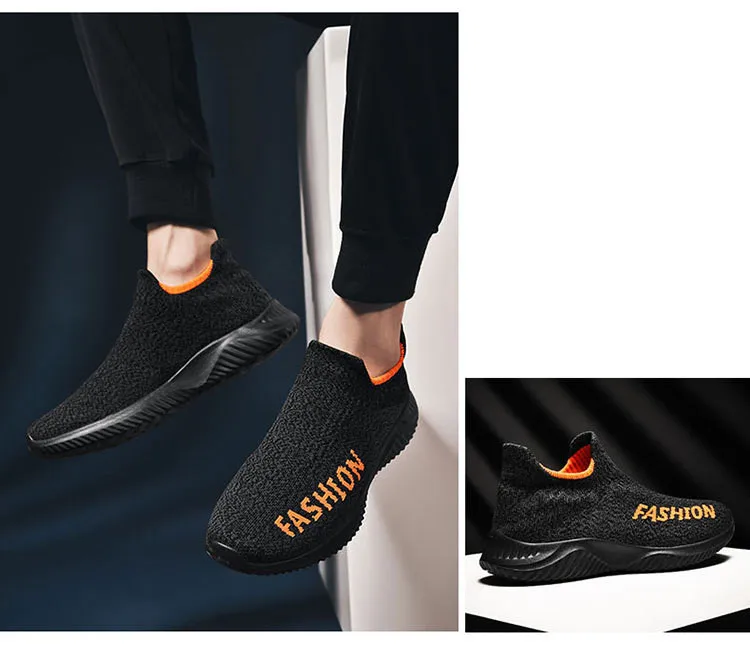 Мужская повседневная обувь на плоской подошве; Модные уличные дышащие парные носки без шнуровки; Мужская обувь на платформе с круглым носком; Прогулочная обувь размера плюс 35-45