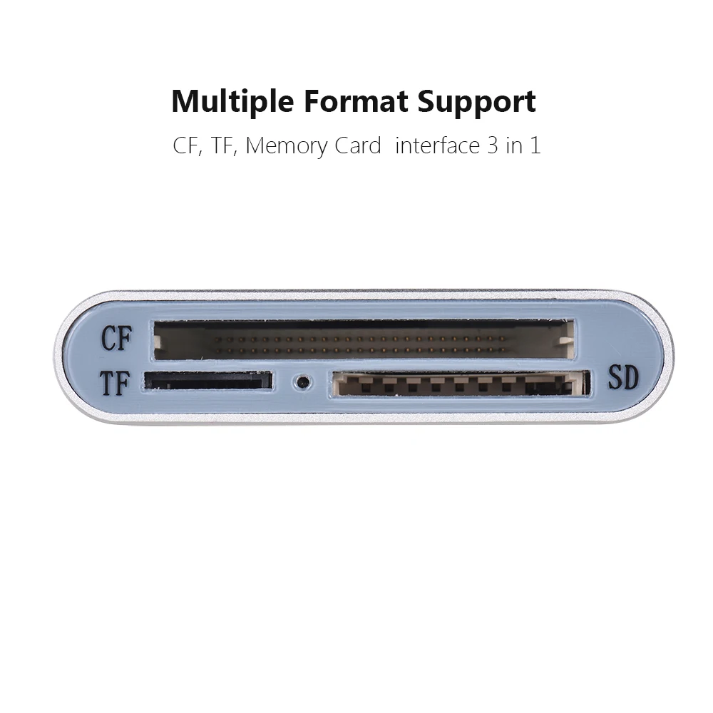 Этот кард-ридер записывает данные с более высокой скоростью, чем большинство портов ПК, поддерживает 3 в 1 SDXC CF и формат TF, вы можете легко вставить карту памяти без усилий.