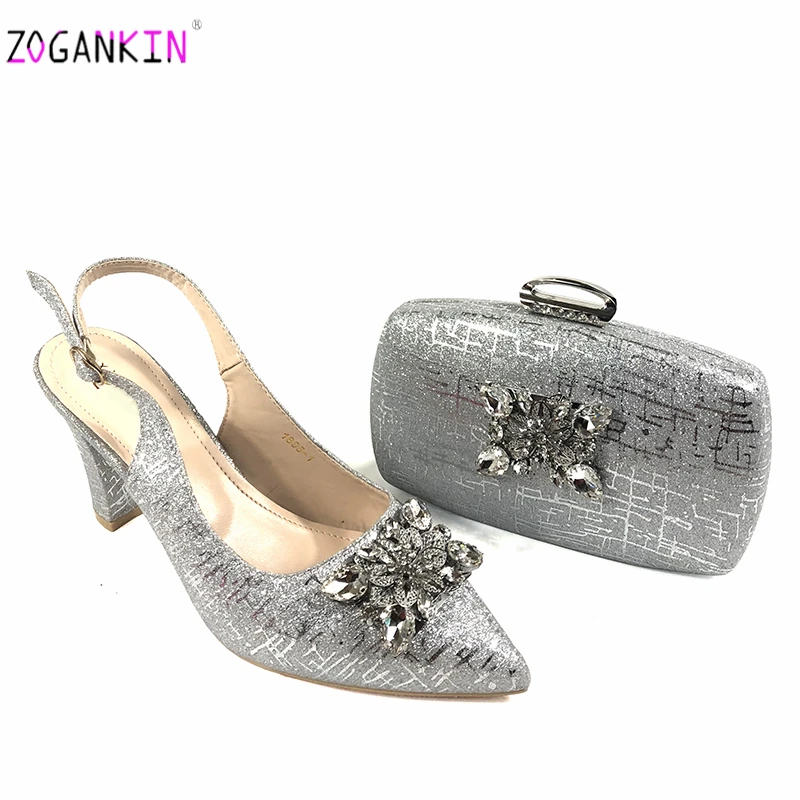 Женская обувь в африканском стиле серебристого цвета комплект из обуви и сумки