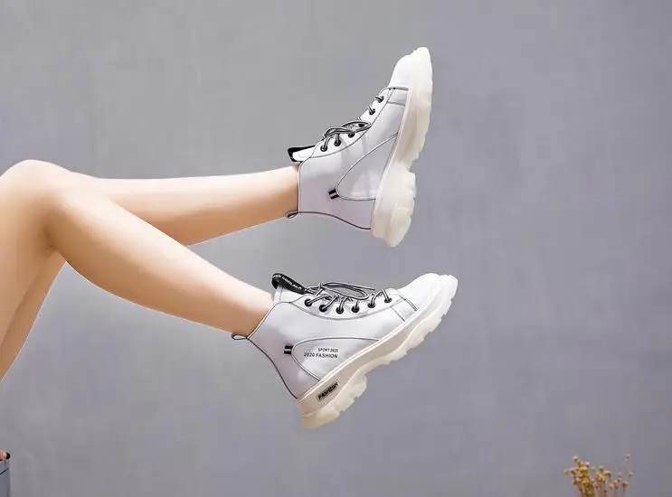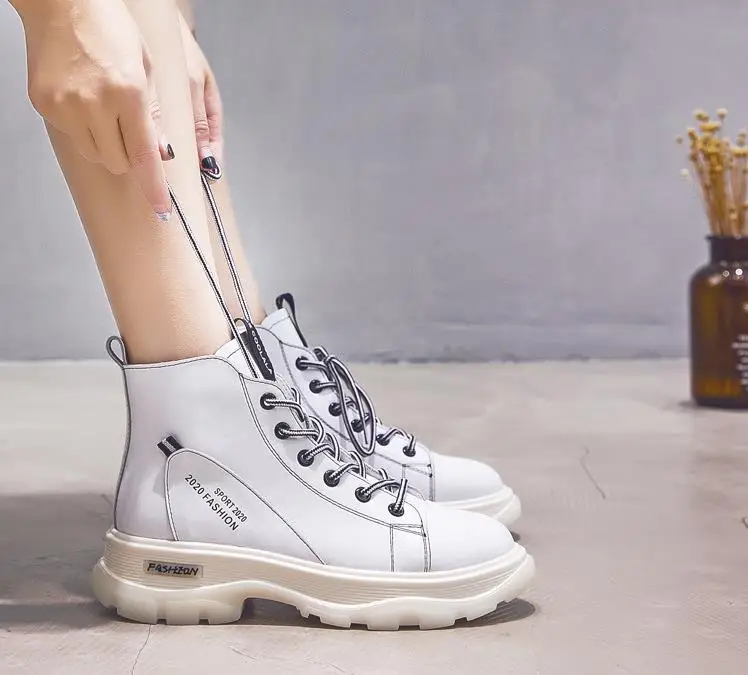 Белые ботильоны; Ботинки martin на платформе; Новинка 2019 года; сезон осень-зима; спортивные полусапожки из натуральной кожи на толстой подошве; женские