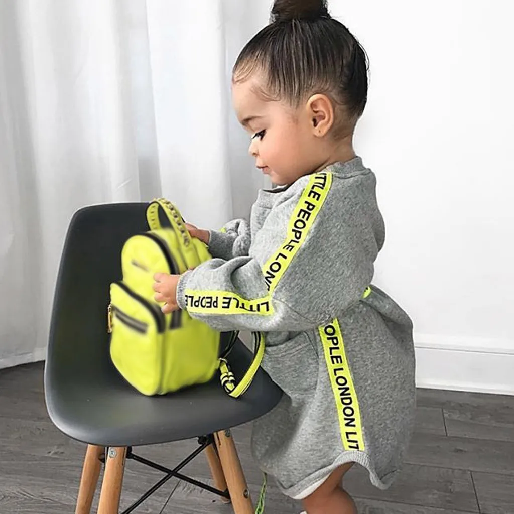 Милые платья для маленьких девочек платье принцессы с длинными рукавами и буквенным принтом и карманами на поясе для маленьких девочек