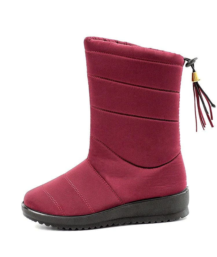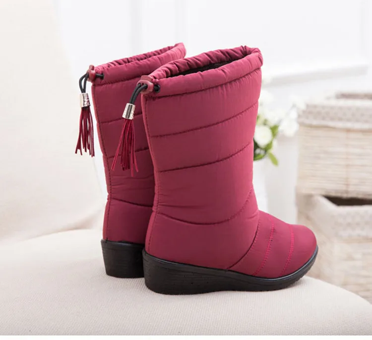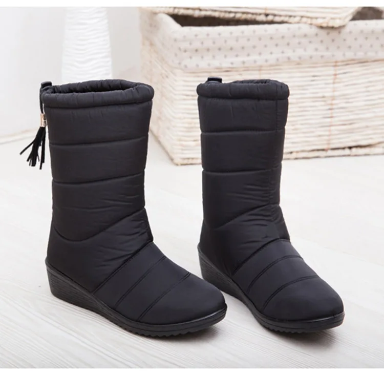 Женские ботинки, модные зимние сапоги до середины икры на танкетке, водонепроницаемые зимние сапоги, женская теплая зимняя обувь, 2019