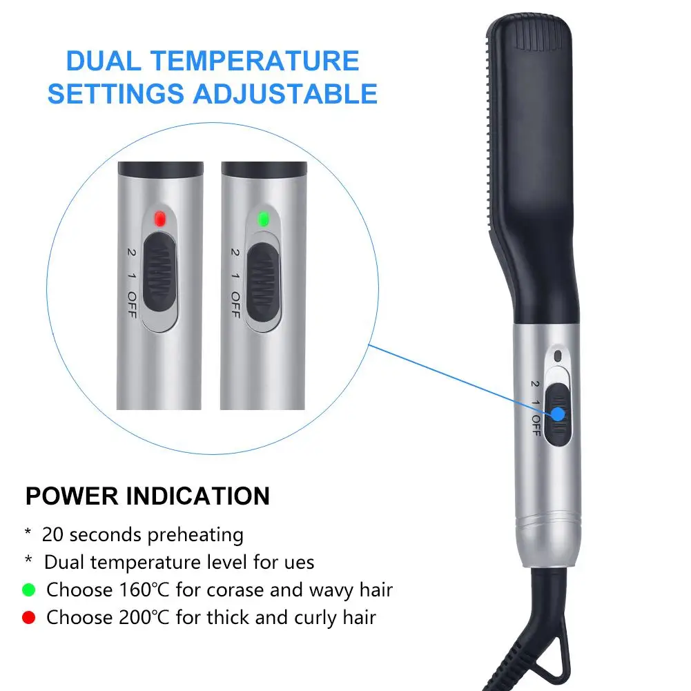 3. Безопасно для использования: расческа действует в качестве защитной крышки для нагревательной пластины, чтобы предотвратить чрезмерные ожоги на волосах.1. Многофункциональная щетка для дизайна волос в сочетании с нагревательной пластиной и зубцы гребня, сбрасывающая бороду