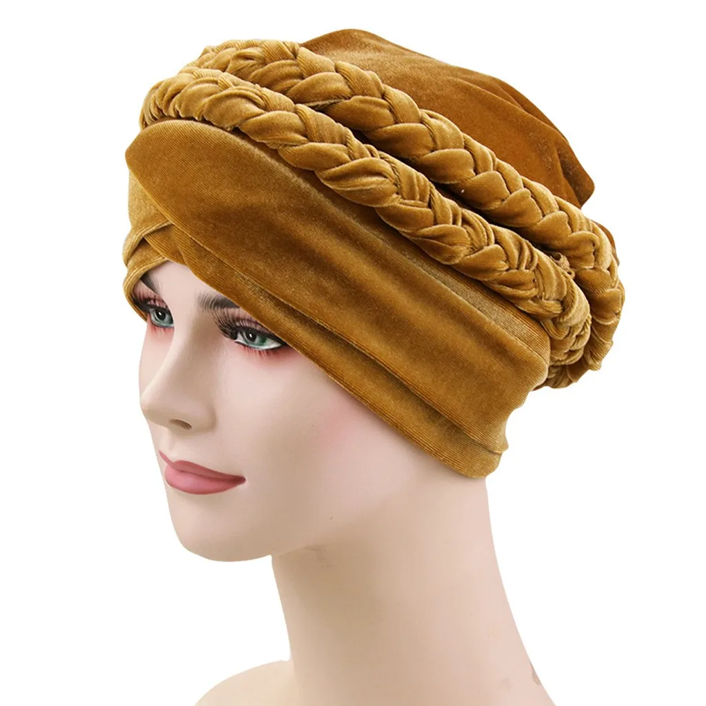 Привлекательная (ый) Отличный подарок для женщин/леди Материал: бархат Посылка включает: 1 шт.Женская жемчужная плетеная бархатная мусульманская эластичный тюрбан шапка после химиотерапии головной платок