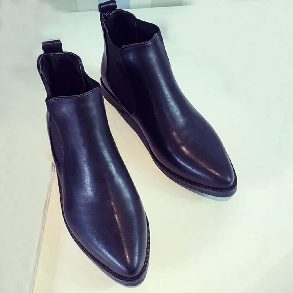 Женские ботинки; Bashion; Элегантные простые удобные ботинки на плоской подошве; Обувь с острым носком