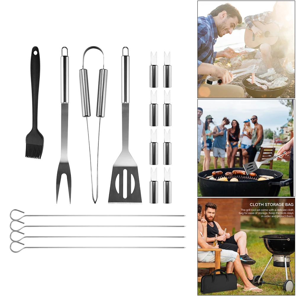 Наши принадлежности для гриля для барбекю, компактный размер набора легкий для переноски и хранения, который идеально подходит для барбекю, кемпинга, пикников и приготовления пищи на открытом воздухе.
