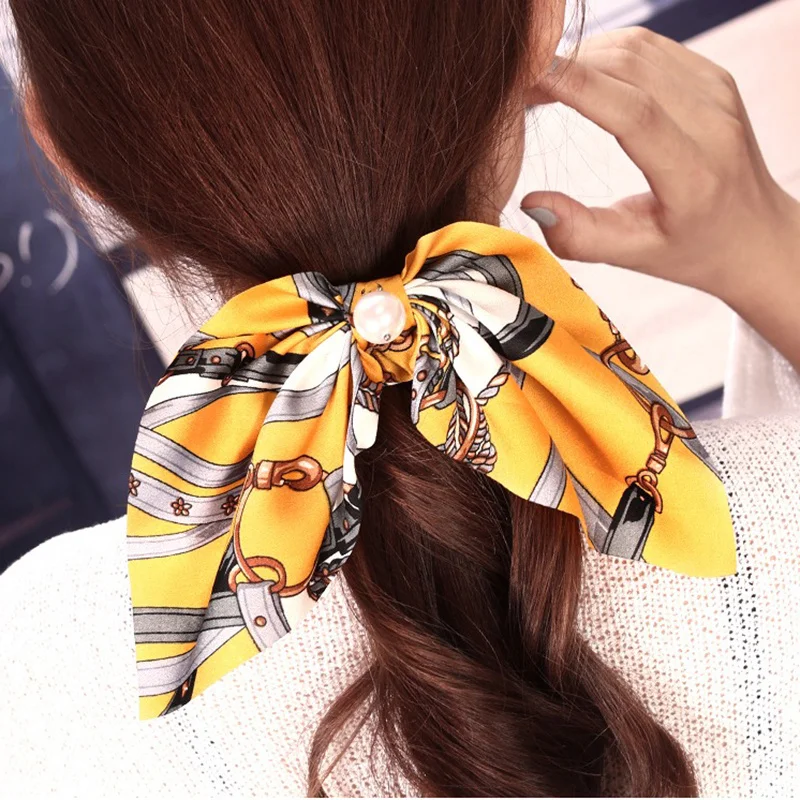 Модные резинки для волос из шифона, Шелковый бант, Женский жемчужный держатель для хвоста, резинка для волос, эластичные резинки, аксессуары для волос, головной убор