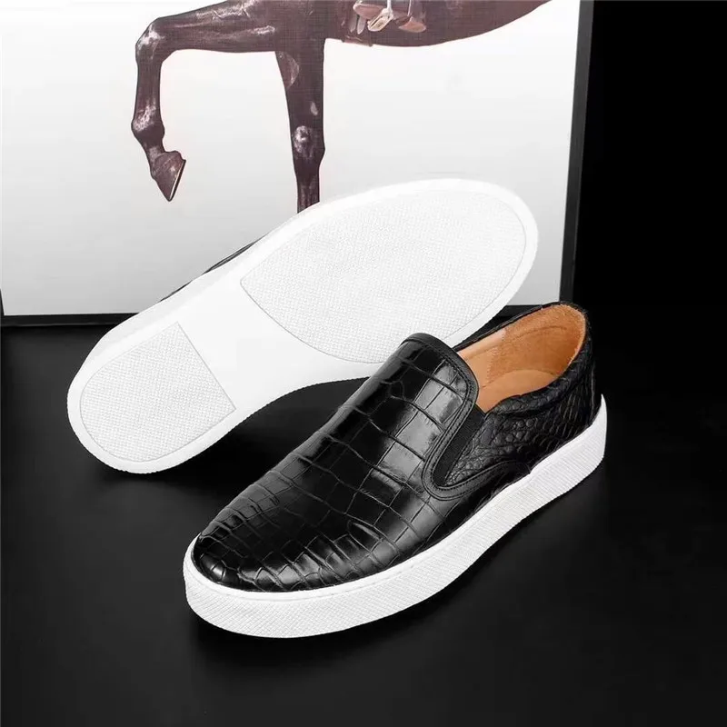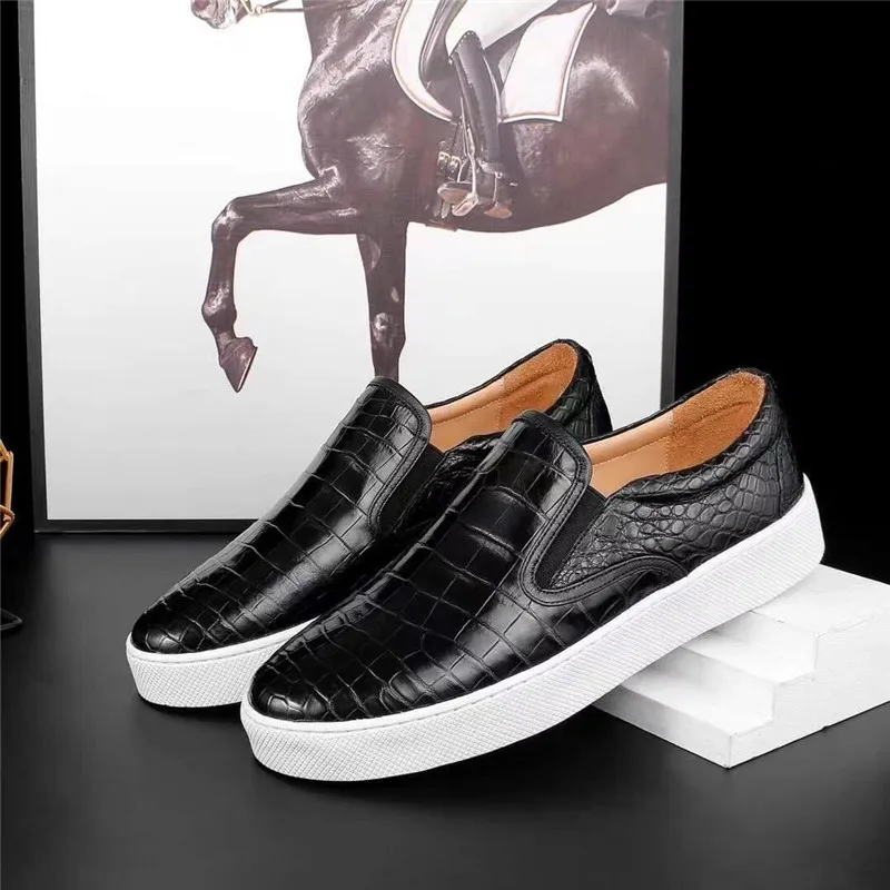 Unisex Style Authentic Real Crocodile Belly Skin Men's Black Casual Sneakers Genuine Alligator Leather Male Slip-on Loafer Shoes