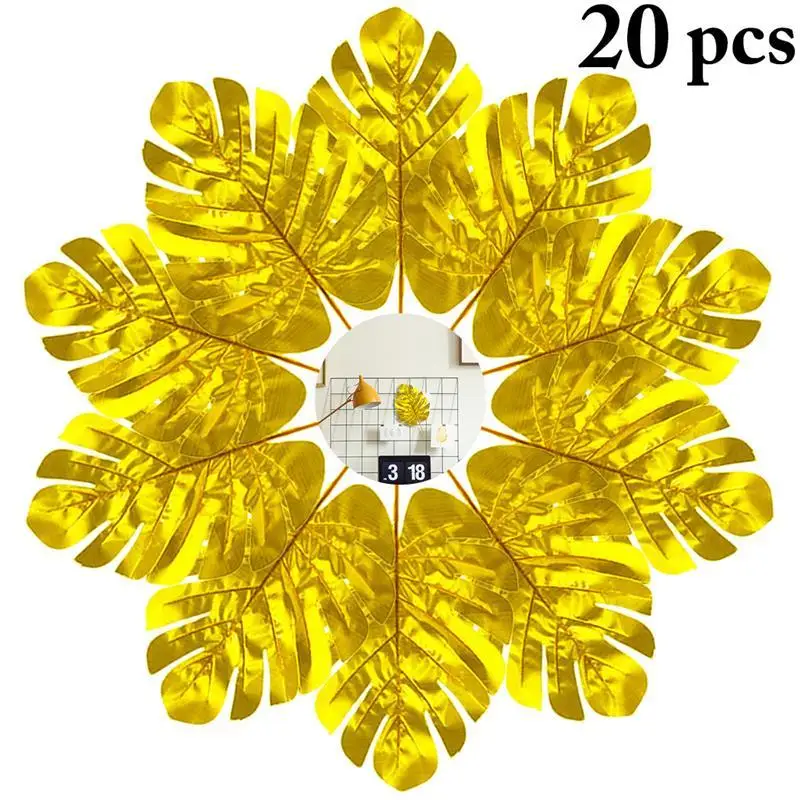 20 шт., золотые искусственные листья, искусственные тропические Пальмовые Листья, сделай сам, растения, домашние вечерние украшения для свадебного стола