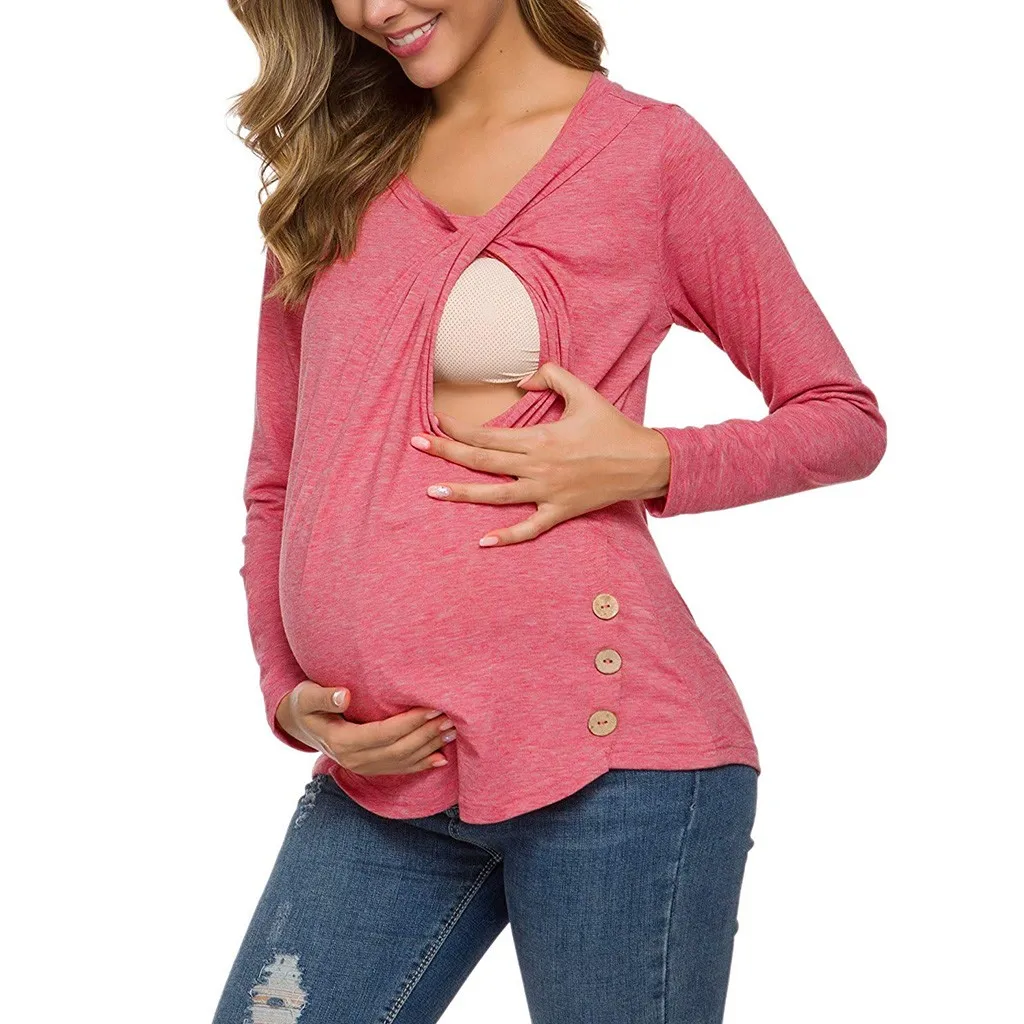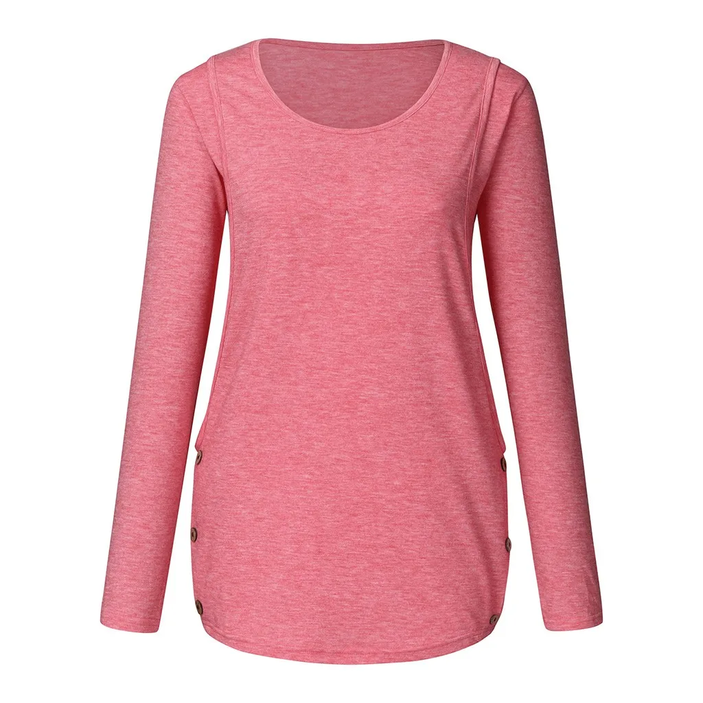 Женская туника для беременных с длинным рукавом и боковой пуговицей, топы для кормления грудью