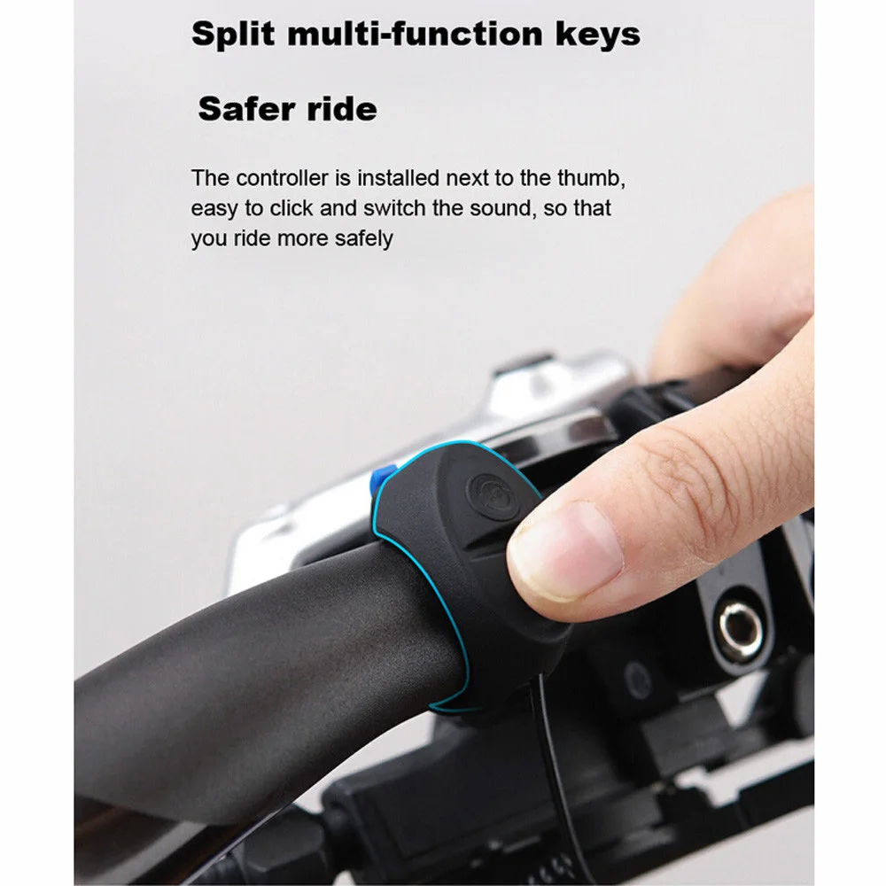 Звонок и ключ разделены, чтобы избежать того, чтобы ваша рука покидала ручку, когда вы используете звонок. Клавиша контроллера устанавливается рядом с большим пальцем, Легко щелкнуть и переключить звук, чтобы вы могли безопасно ездить.