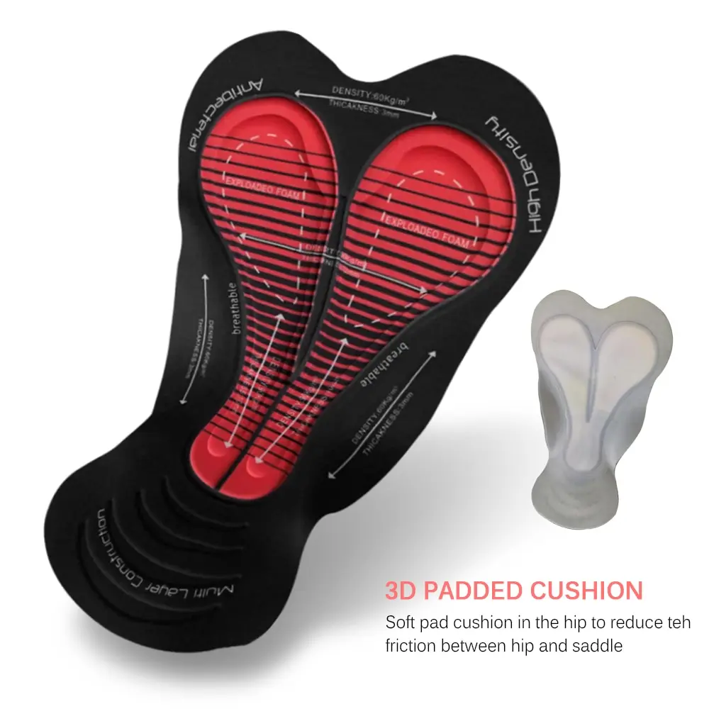 Эти велосипедные шорты изготовлены из высококачественной полиэфирной ткани, которая быстросохнущая и легкая. Подушка с 3D подкладкой обеспечивает воздухопроницаемость и вентиляцию бедра, уменьшая трение между бедром и велосипедным седлом. Эластичный широкий пояс для комфортной посадки, дышащий материал для сохранения сухости и прохлады, хорошо подходит для езды на дальние расстояния.