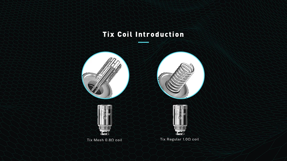 Особенности: Мощность: 10-20 Вт Вход: 3,2-4,2 в Сопротивление катушки: 0,3-30 Батарея: 1000 мА-ч Емкость стручки: 2 мл Материал: цинковый сплав + PC + IML Размер: 90,7*43*19 мм Эффективность: 95% Спецификация зарядки: 5 V/1A Упаковочный лист: 1 X Tix Pod Сертификат-1 шт. 1 х картридж Tix (tix сетка 0,8 Ω катушка внутри) 1 х гарантийный талон 1 X Tix Обычная Катушка 1,0 Ω Руководство пользователя (1 шт.) 1 кабель для зарядки типа C Ремешок-1 шт.