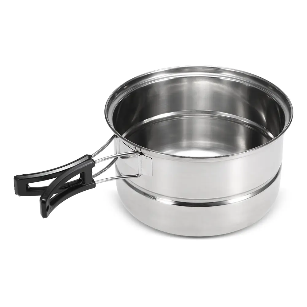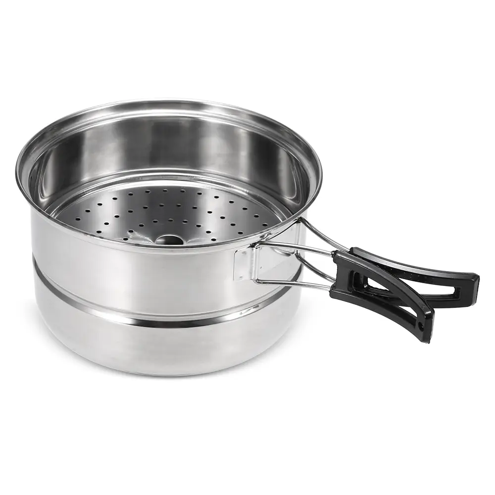 Набор посуды из 3 предметов включает кастрюлю, сковородку и стойку для приготовления на пару, что позволяет вам наслаждаться различными способами приготовления пищи, отлично подходит для кемпинга, альпинизма и кухни.