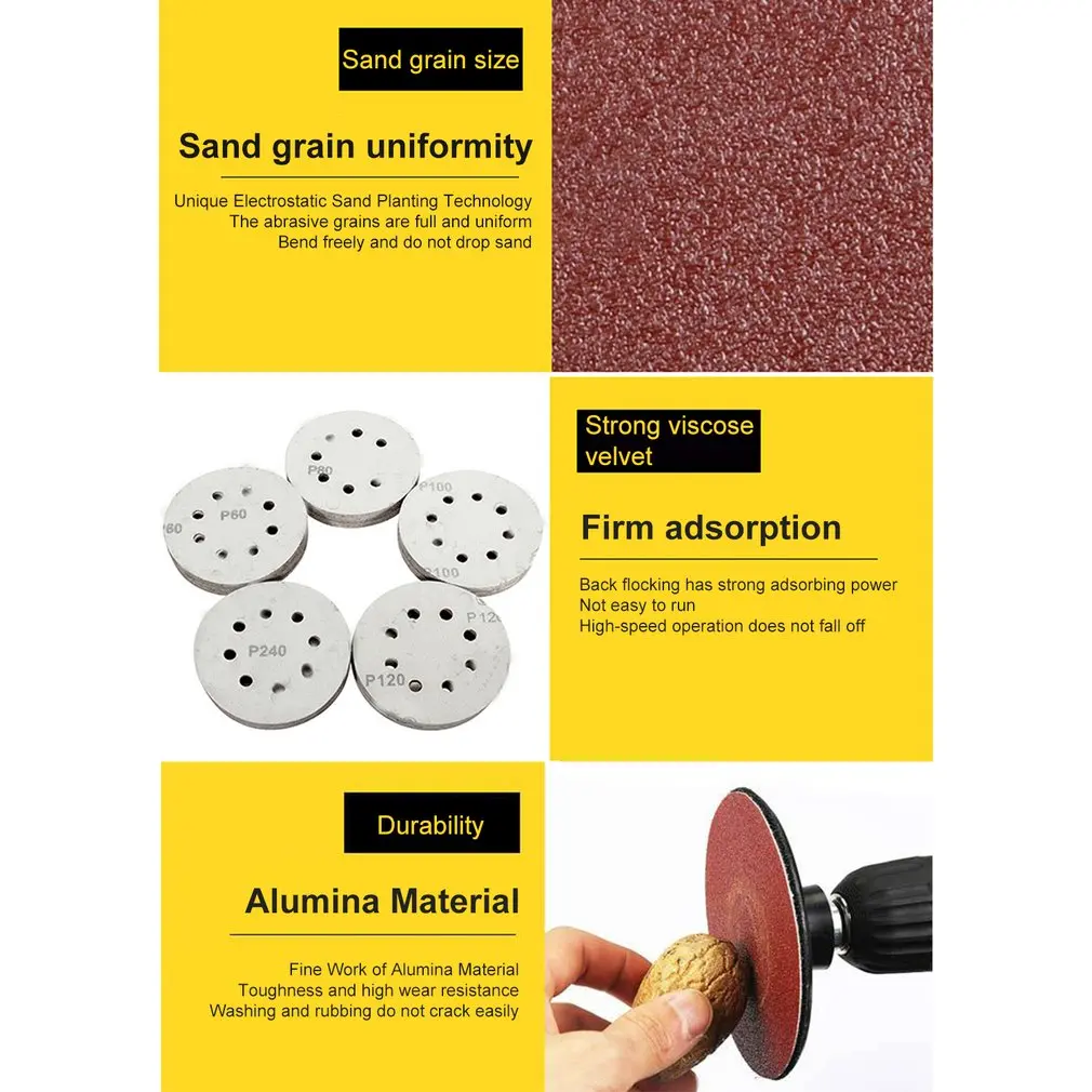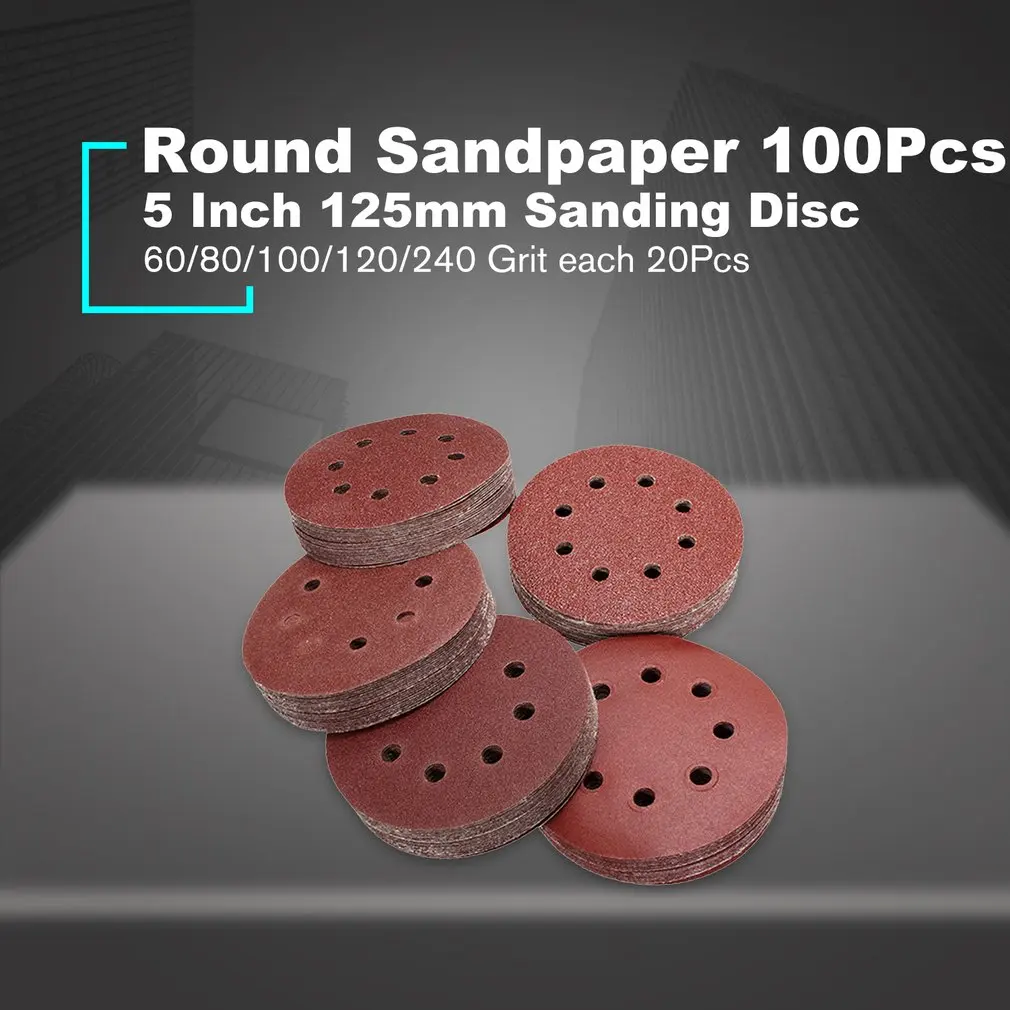 100 шт 5 дюймов/125 мм круглая наждачная бумага для полирования диска 8 отверстий песочные листы 40-240 шлифовальный диск для полировки чистящий инструмент
