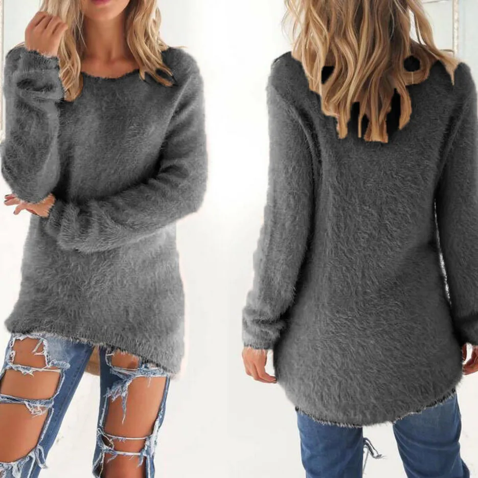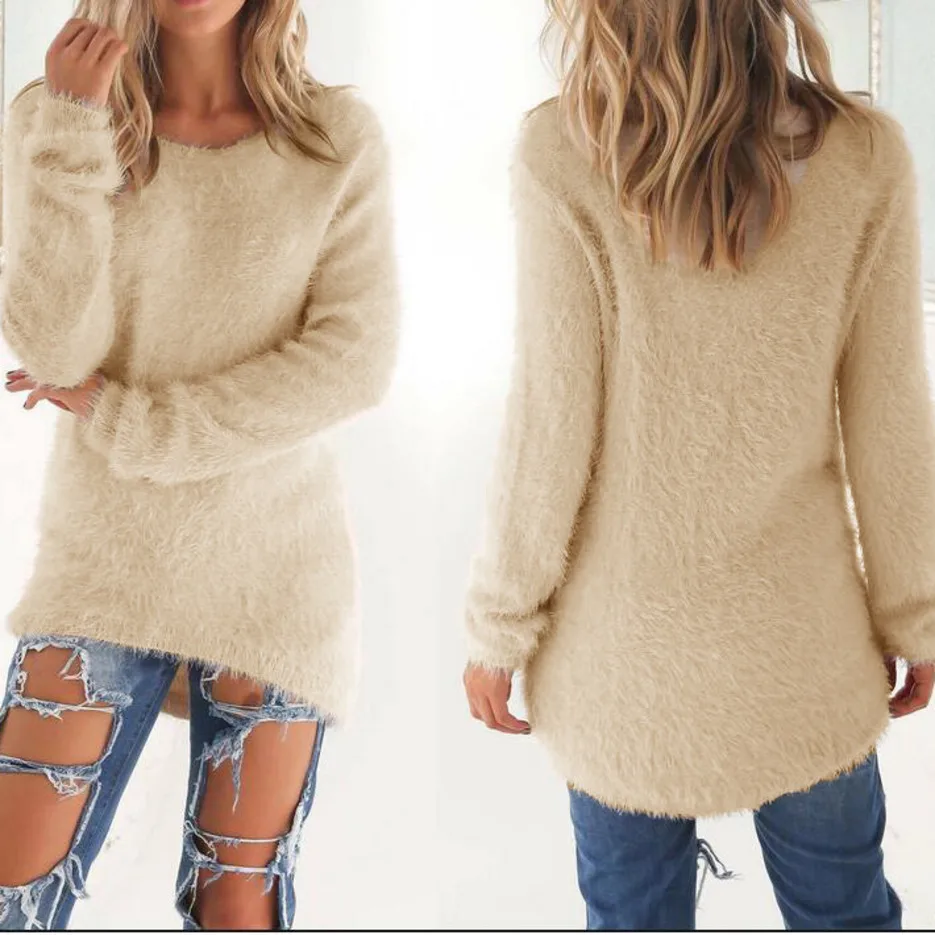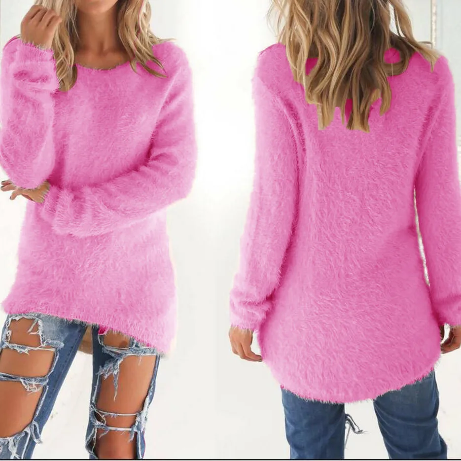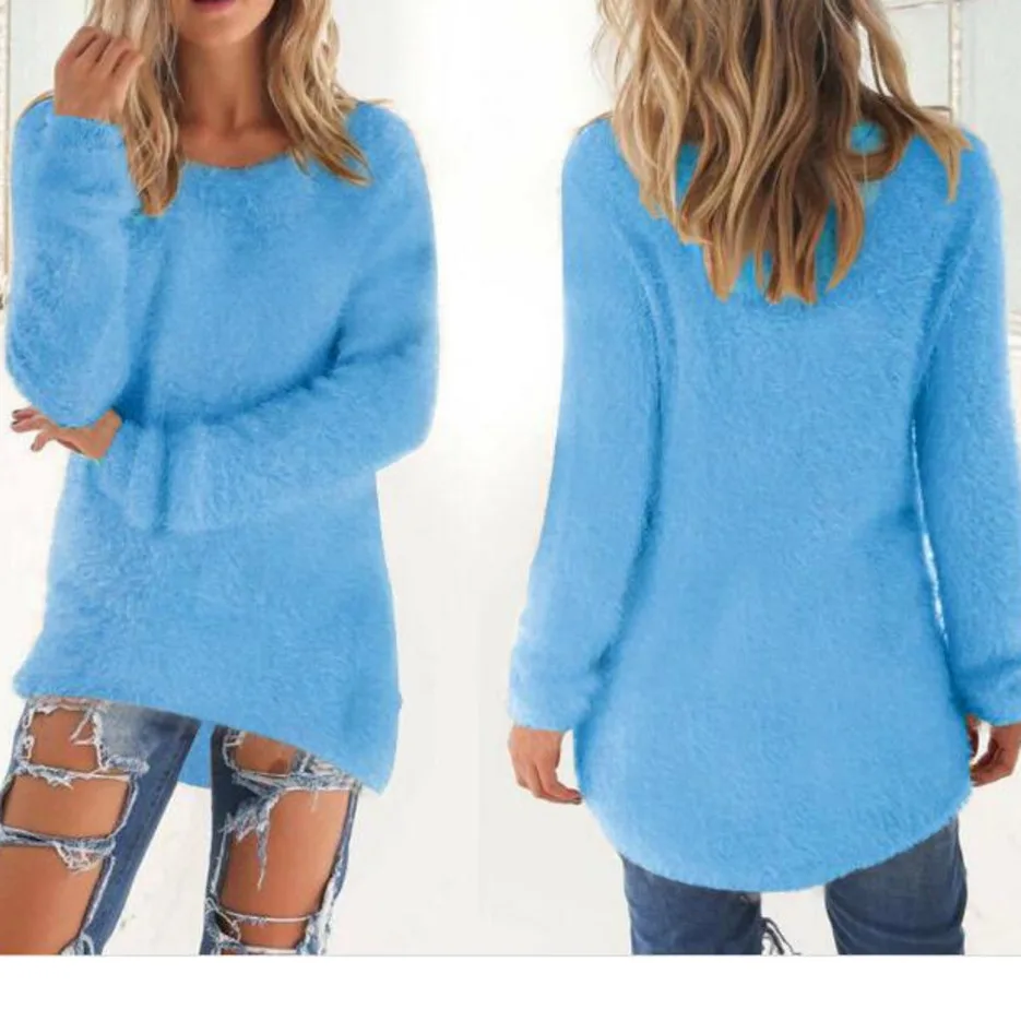 Вязаные свитера для женщин Invierno 2019 повседневные с круглым вырезом и длинным