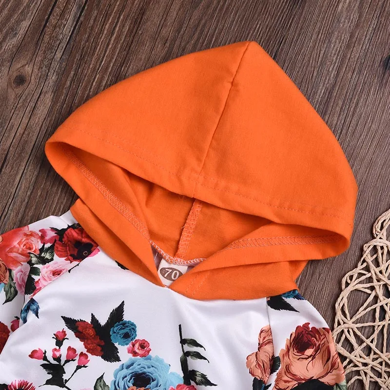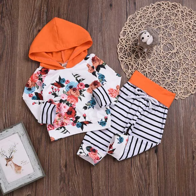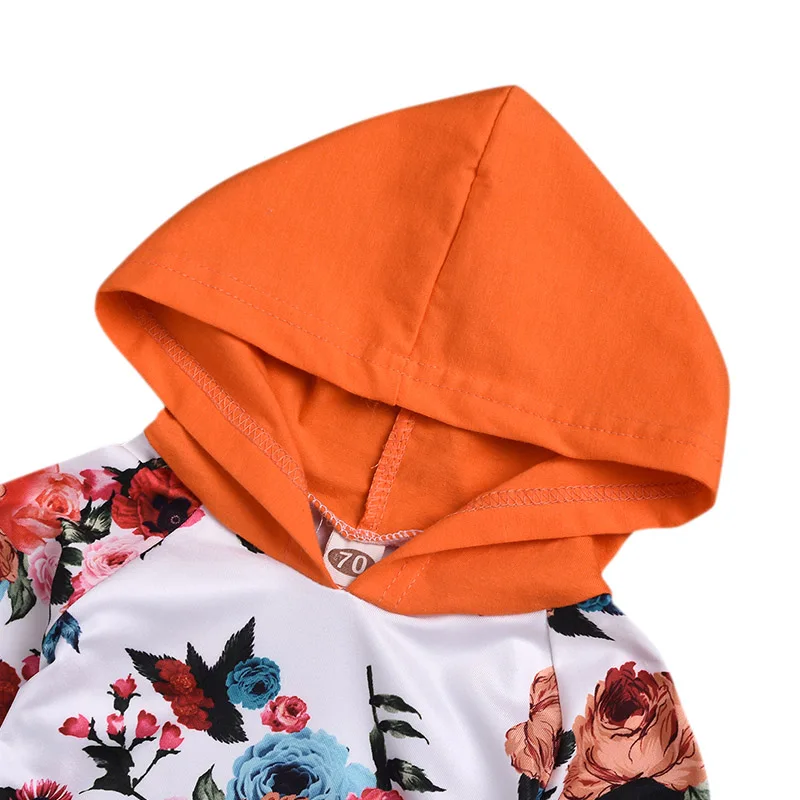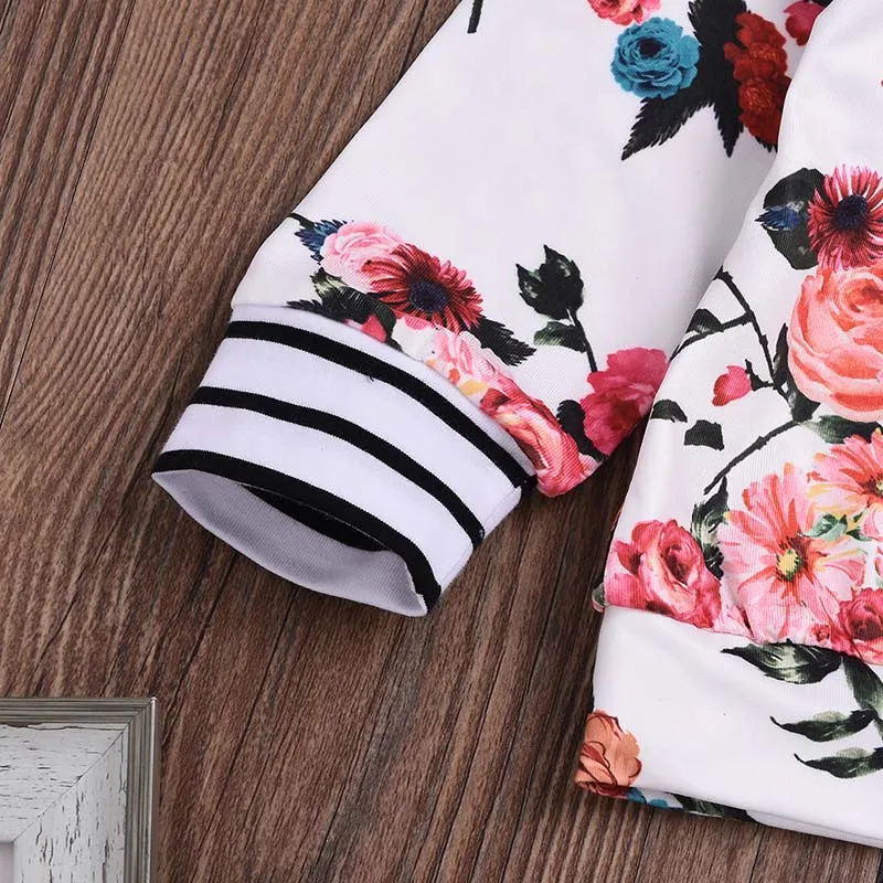 Милый весенне-осенний свитер для маленьких девочек, худи с цветочным принтом + штаны с ремешками, комплект одежды, спортивный костюм для малышей, одежда