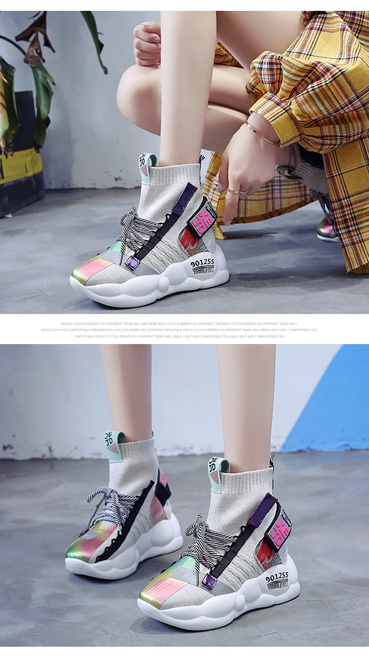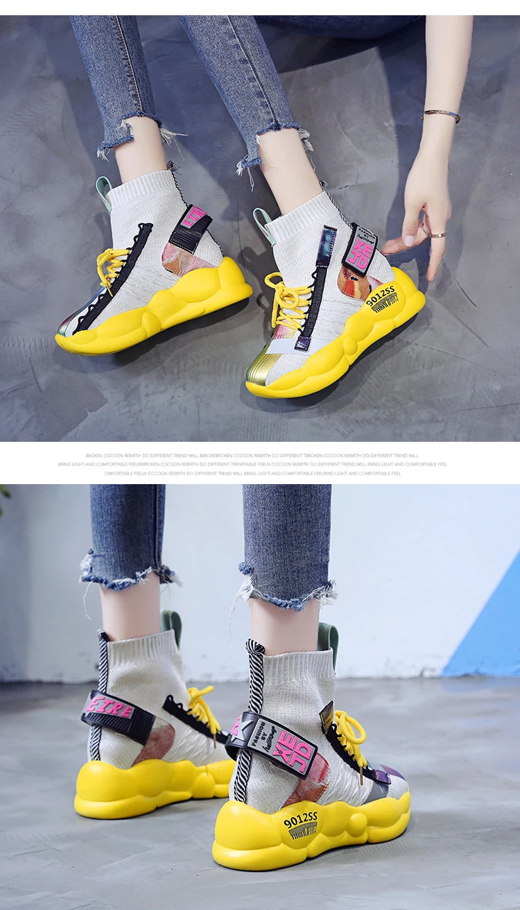 Женские кроссовки с высоким берцем, дышащие кроссовки на платформе, обувь для папы, Новинка осени 2019