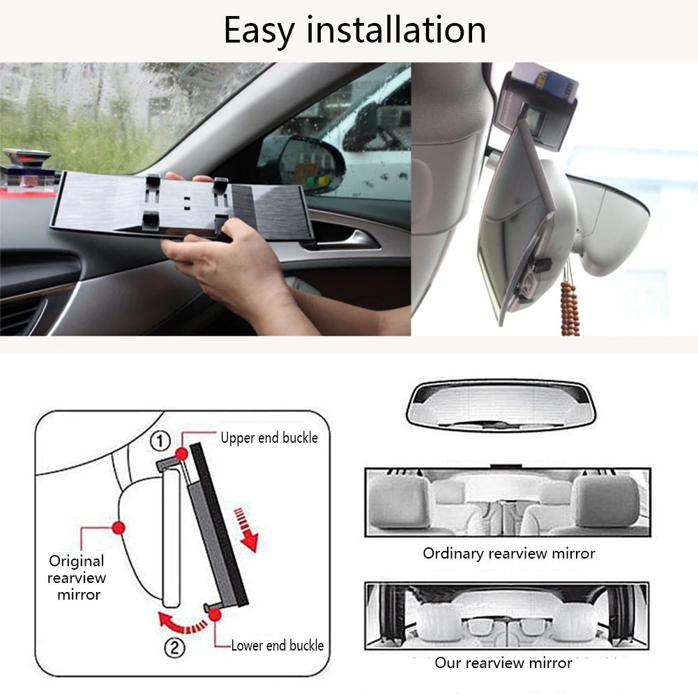 6, простая установка: Чрезвычайно простой процесс установки, потому что изогнутое зеркало за дизайном удлинитель пряжки, так что, независимо от того, мужчины, женщины и дети могут легко установить, просто нужна одна карта, одна тяга, удобно и практично. Ни одна установка не повредит зеркало заднего вида оригинального автомобиля, снимите его, когда не используется.