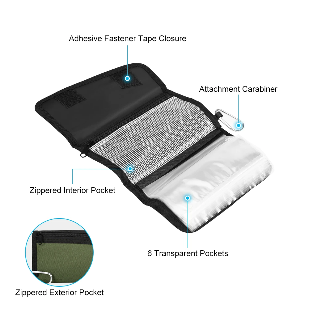 Эта Рыболовная Сумка включает в себя два кармана на молнии и 6 прозрачных карманов, чтобы держать рыболовные приманки и другие ценные вещи организованными и безопасными. Его можно сложить в компактный размер для удобного хранения и транспортировки, отличный аксессуар для рыбалки.