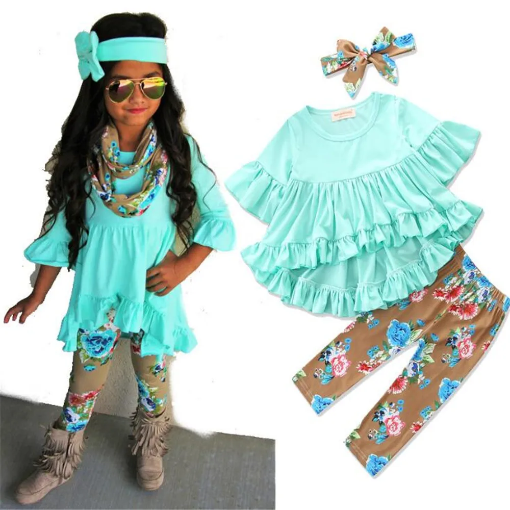 Осенний комплект для девочек, необычная рубашка брюки с цветочным принтом костюм из трех предметов топ и брюки головной убор, Roupa Infantil, одежда для маленьких девочек модная одежда, yh