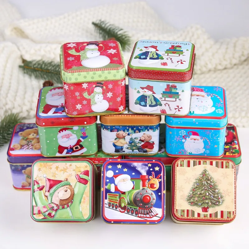 Рождественская тематическая металлическая пустая жестяная Праздничная декоративная коробка конфетный контейнер для хранения печенья случайный узор