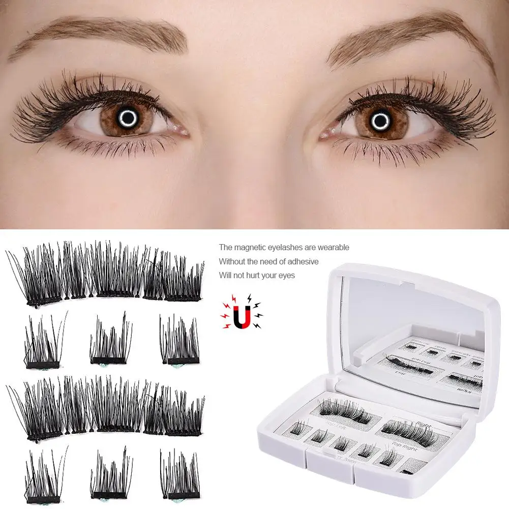 3D набор натуральных магнитных ресниц ручной работы, без клея, без следов, ручная работа, Набор для создания накладных ресниц с зеркалом