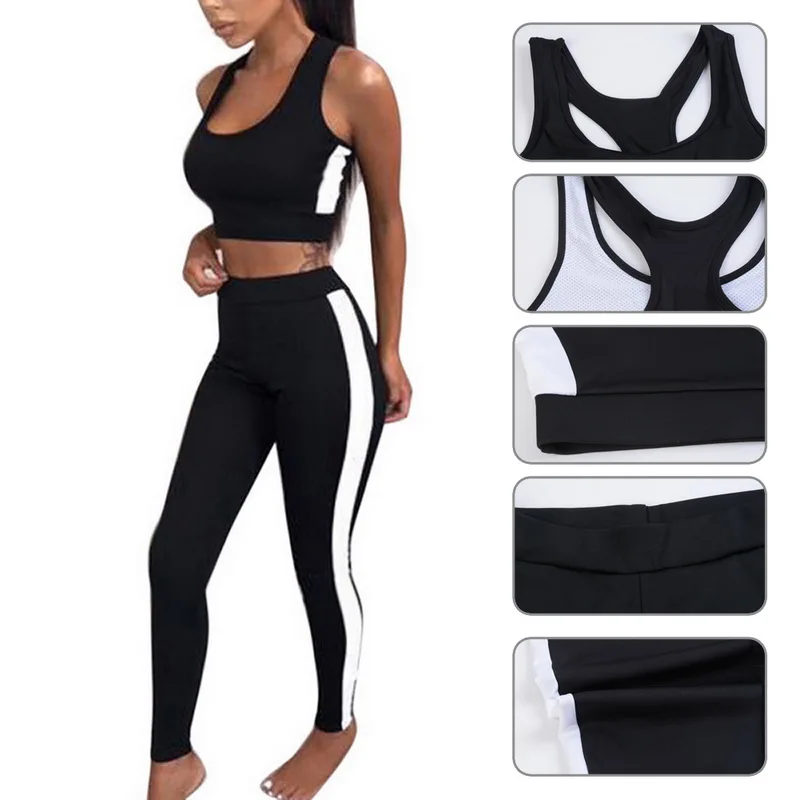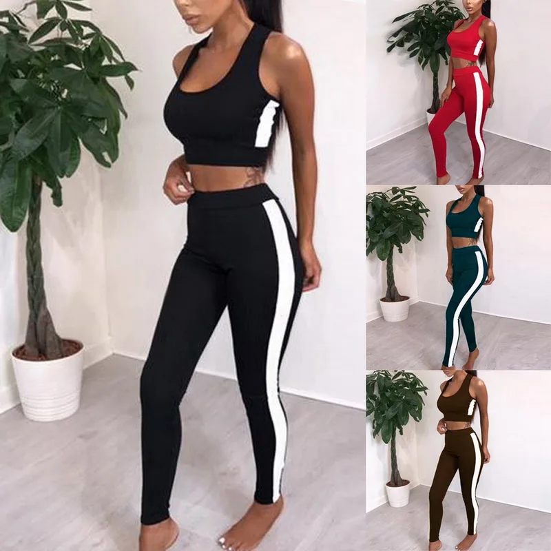 Женские спортивные костюмы, 2 шт., костюмы для бега, с принтом, укороченный топ, с высокой талией, спортивные штаны, женские, без рукавов, жилетка для бега, спортивная одежда 2019