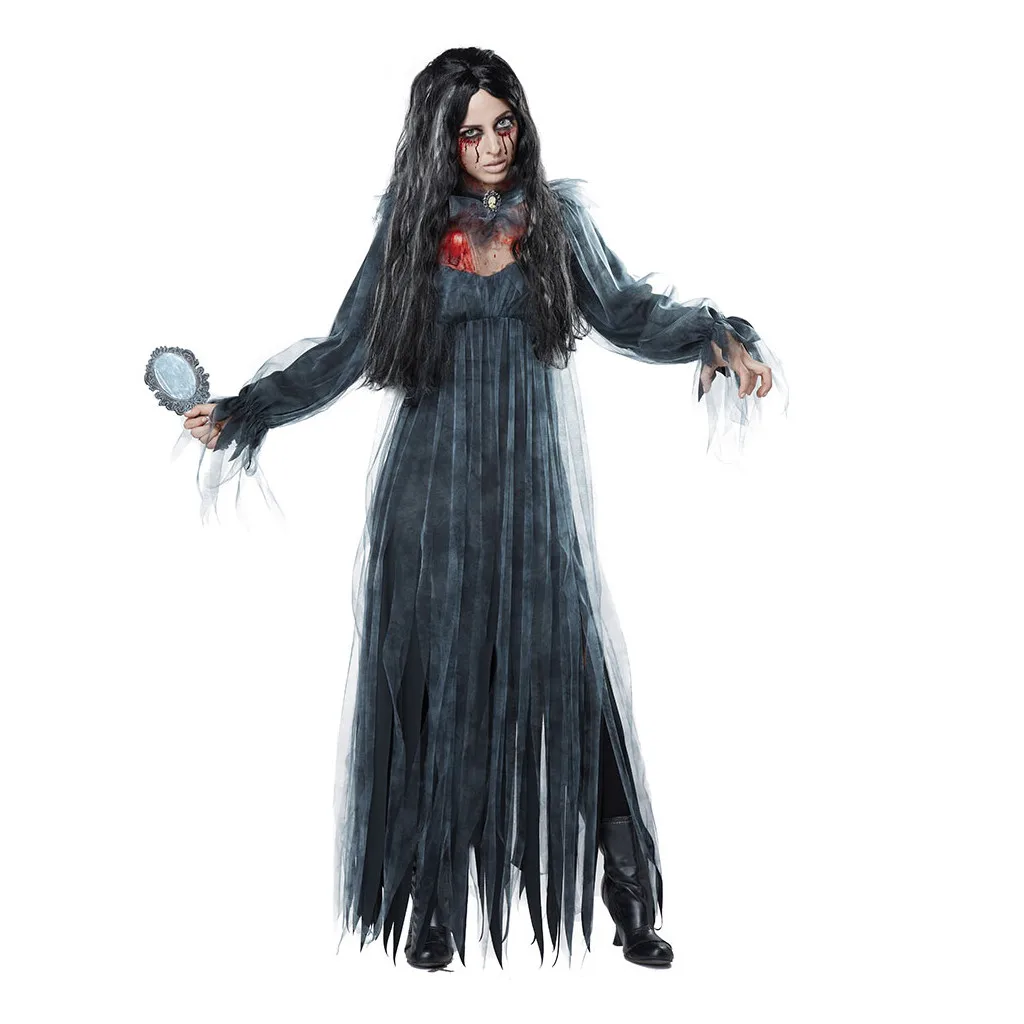 Для женщин Хэллоуин Косплей Костюм Винтаж ведьмы платье макси с длинным рукавом
