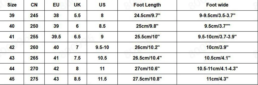 | Размер | CN | ЕС | Великобритания | Свяжитесь с нами | Foot Длина | При покупке обувь на широкую ногу |