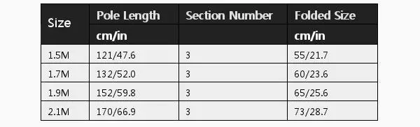Size Pole Length Section Number Folded Size