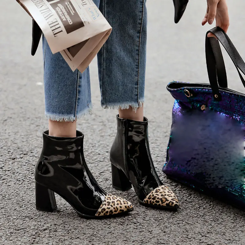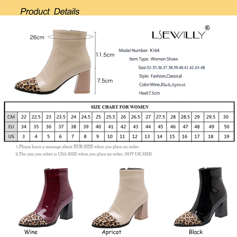 Lsewilly/женские вечерние ботинки; Большие размеры 32-48; Женские ботинки; Женские теплые зимние ботильоны на меху на молнии и высоком массивном каблуке