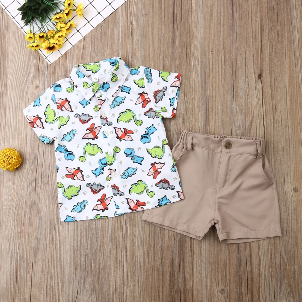 Новейшая модная одежда для маленьких мальчиков, топы с динозавром + штаны! Высокое качество и абсолютно новый 100%