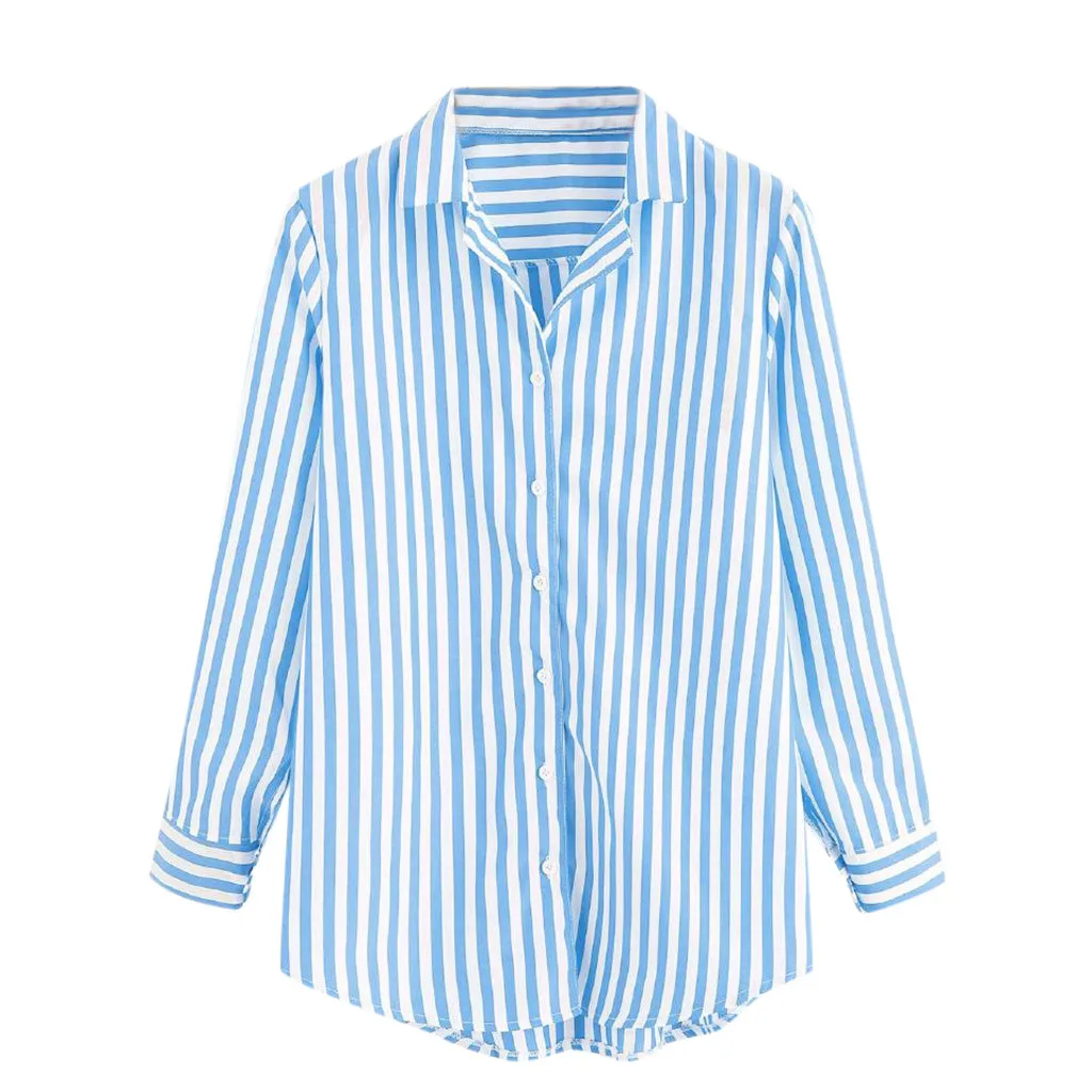 Офисная Женская рубашка модная Осенняя Женская толстовка с круглым вырезом и длинным рукавом в полоску с разрезом Блузка Женская Топ с баской Blusas