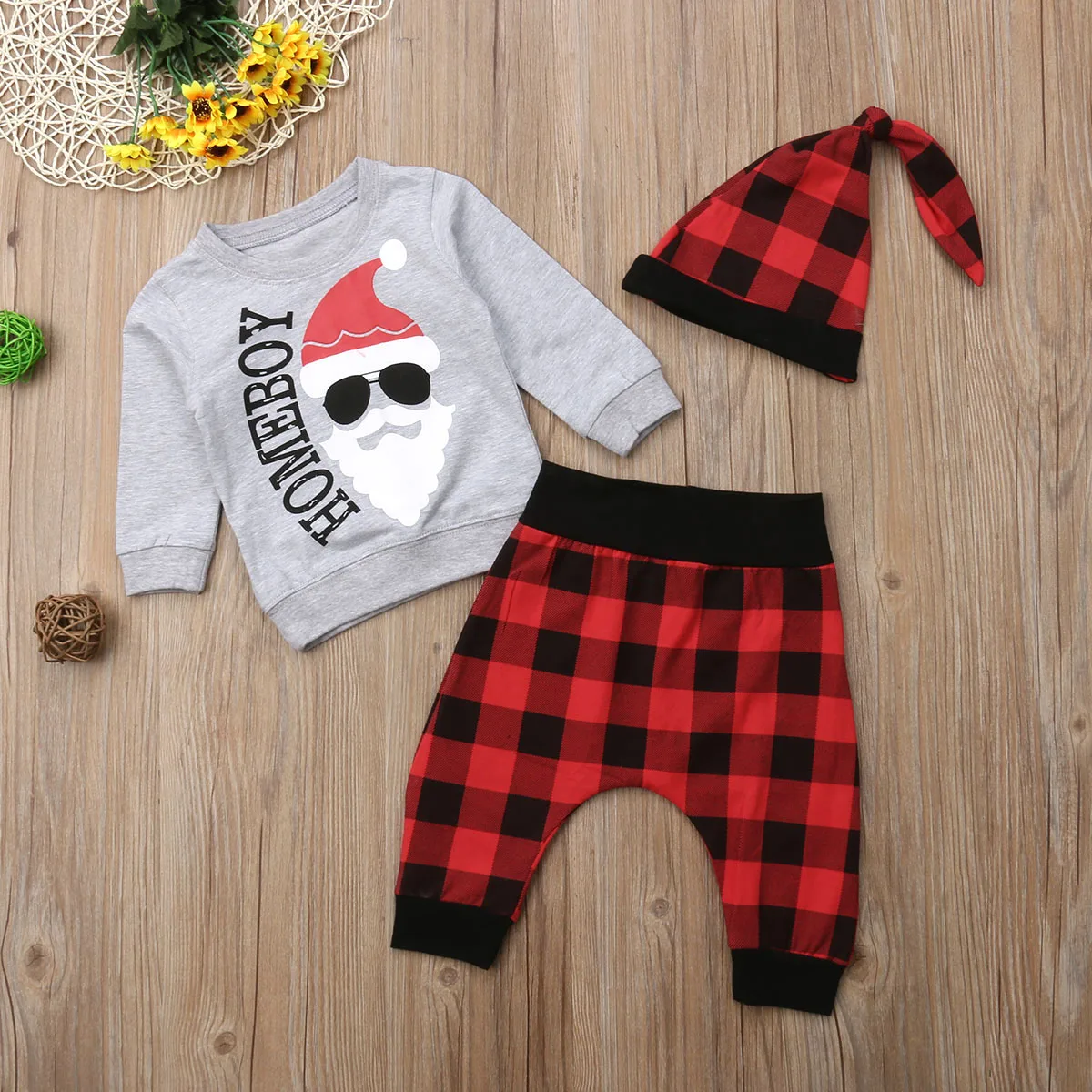 Особенности: Дизайн прибытия, 100 см бренд Новинка, высокоеВысокое качество! Материал:Смешанный хлопок Стиль: поступление; Детский Рождественский комплект одежды для мальчиков Детский Размер: 0-18 м