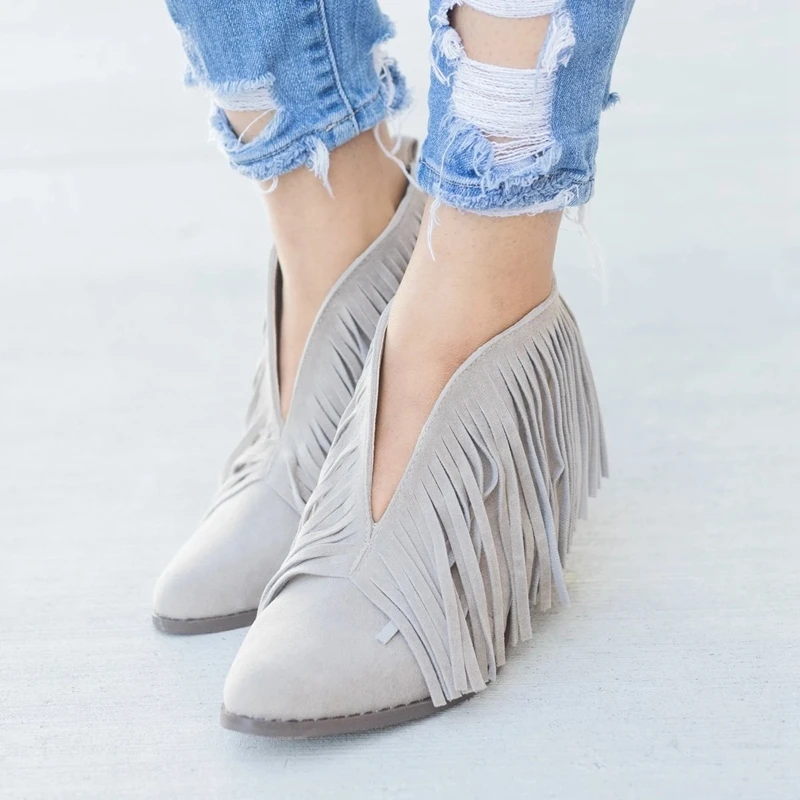 LOOZYKIT Chic Women Shoes Retro Fringe Suede High Heel Ankle Boot Female Mid Heels Casual Mujer Booties Feminina Plus Size 43 | Обувь