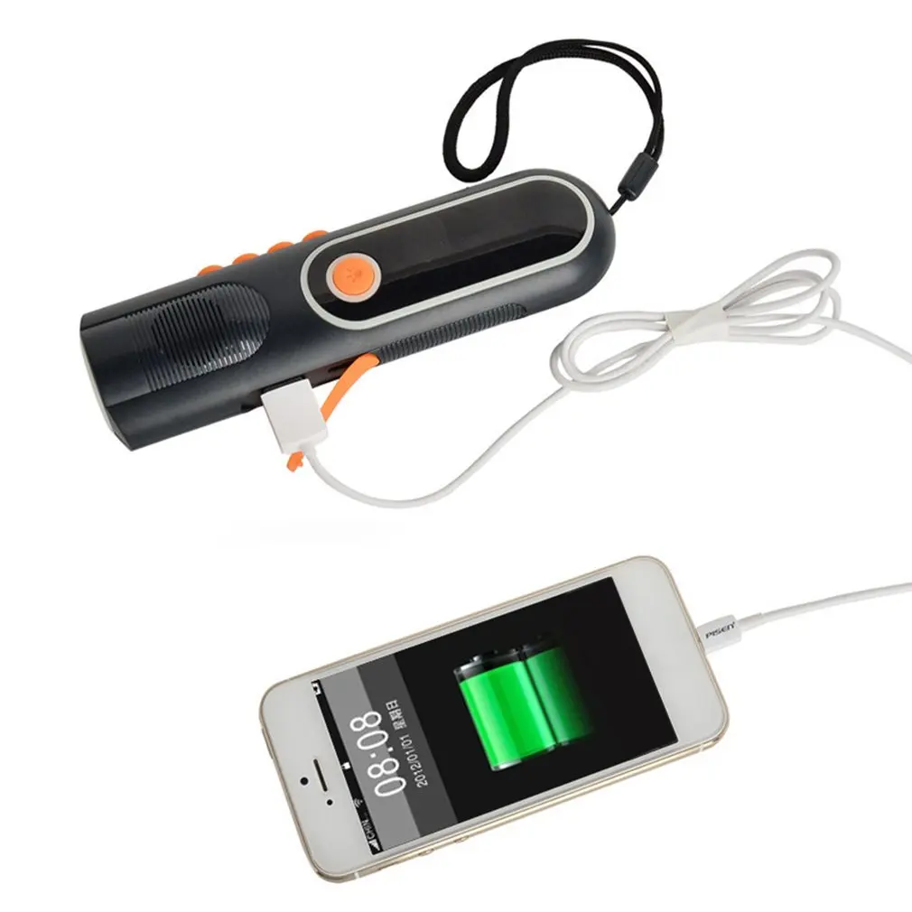 Два способа питания: ручной генератор или зарядка через USB.