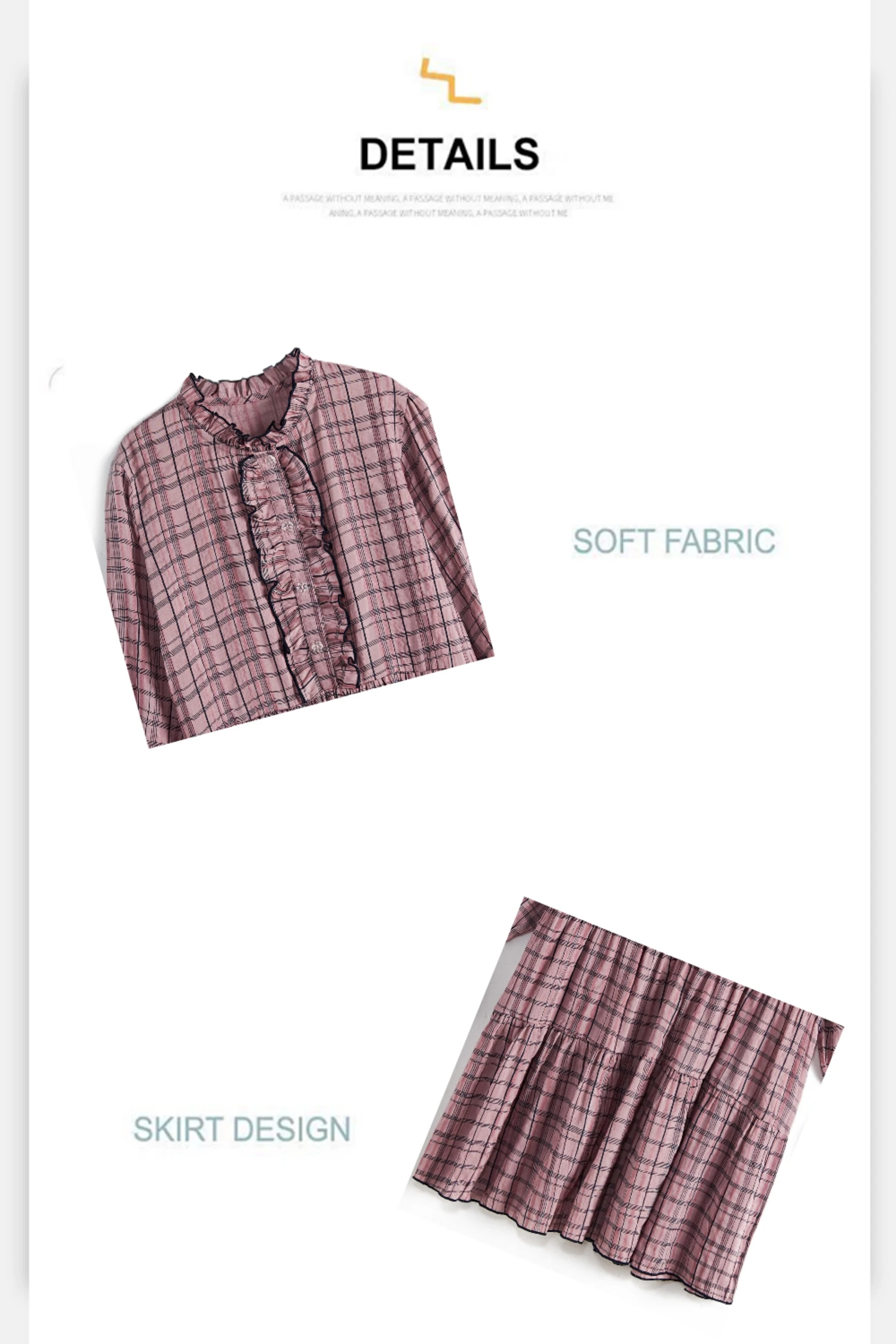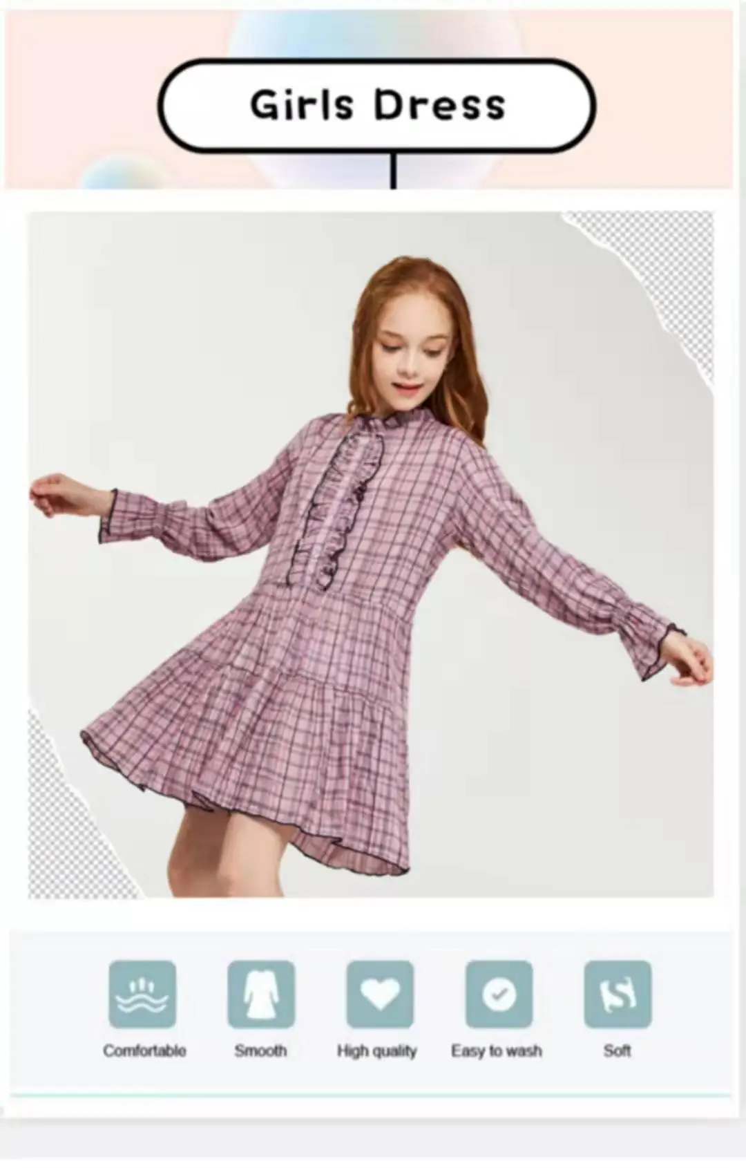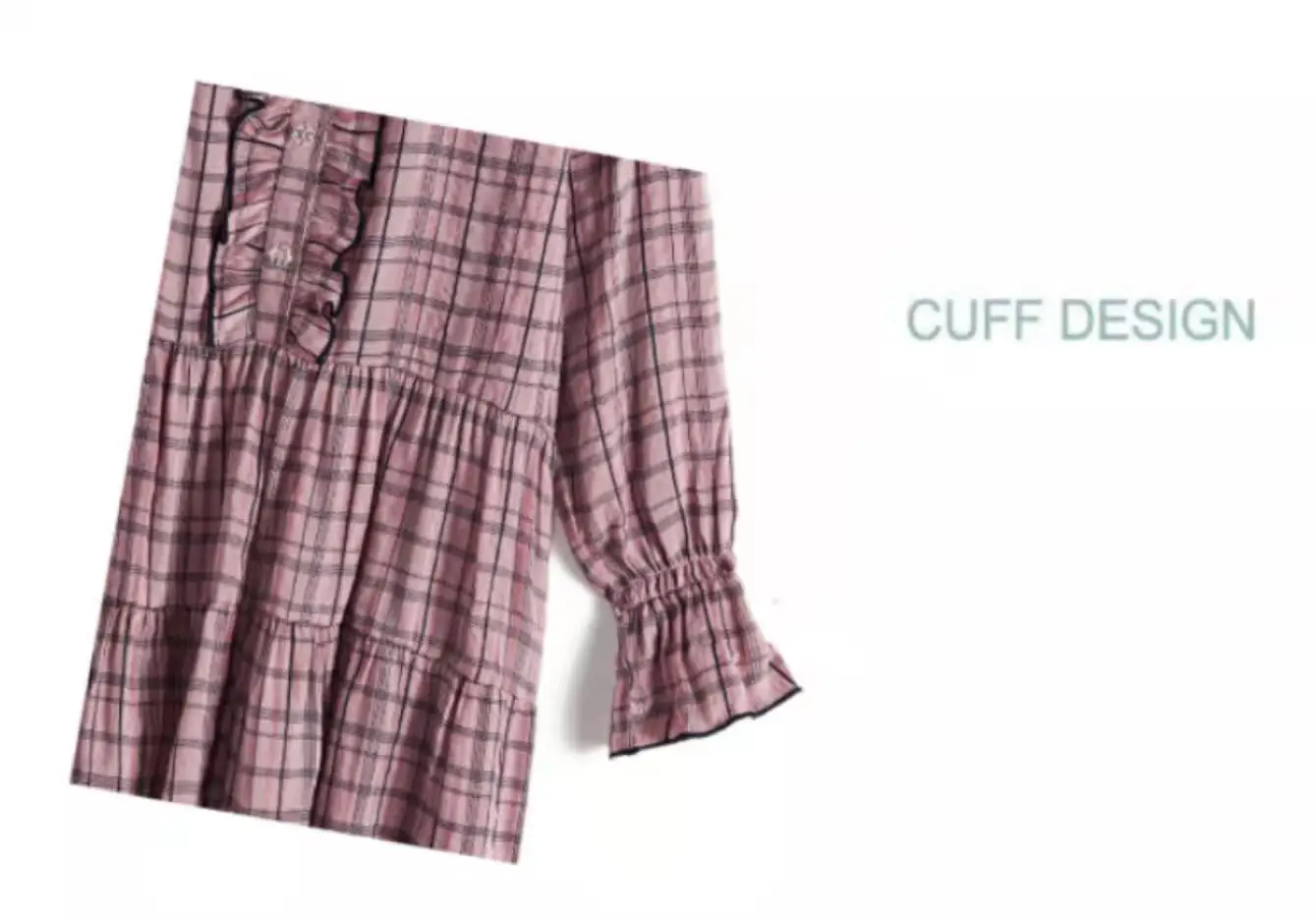Платье в клетку с длинными рукавами и оборками спереди