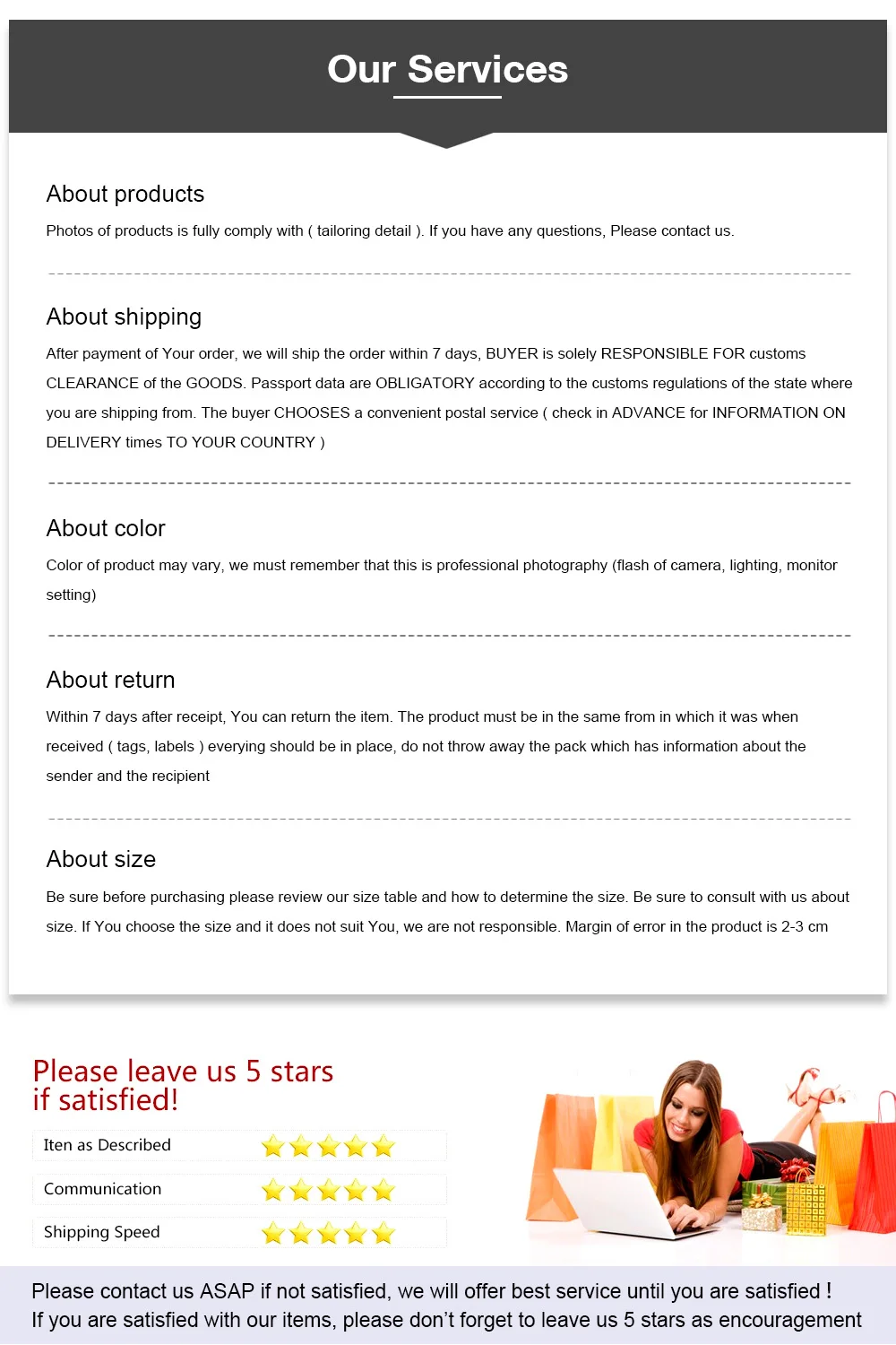 Пожалуйста, не стесняйтесь связаться с нами, если вам нужна помощь! 1. Наш размер не является стандартным размером США, а также стандартным размером евро, а также вашим локальным размером. Информация о внутреннем размере обуви-это китайский размер, а не основа, пожалуйста, не обращайте внимания. 2. Пожалуйста, выберите размер в соответствии с длиной Вашей стопы в таблице размеров ниже, а не длиной стельки и длиной внешней части обуви. 3. Например, средства ухода за кожей стоп длины стопы 26 см, выбирайте размеры 8,5 здесь. Размер 5 = длина стопы 22,5 см, CN Размер 35 Размер 5,5 = длина стопы 23 см, размер 36 CN Размер 6 = длина стопы 23,5 см, размер 37 CN Размер 6,5 = длина стопы 24 см, размер CN 38