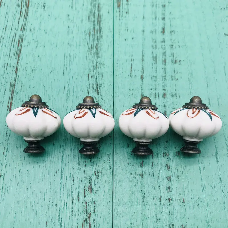 8x белая керамическая ручка для комода, выдвижная ручка, окрашенная в зелено-красную линию, ручки для кухонного шкафа, фурнитура для ванной, выдвижные ручки