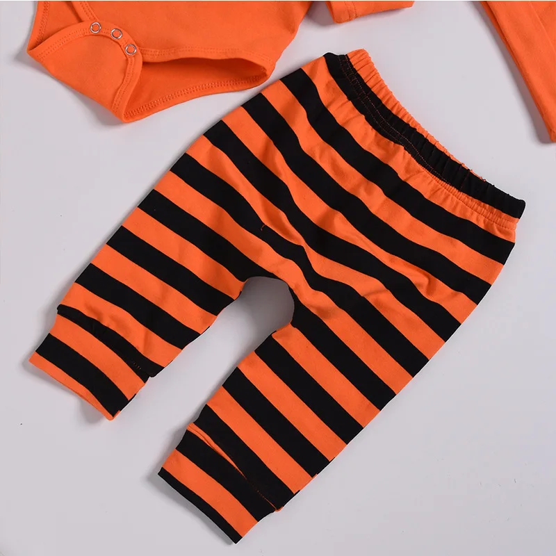 3PCS Set New Newborn Kid Baby Boy Outfit Clothes Pumpkin Romper Pants Skeleton Halloween Costume Clothing Set