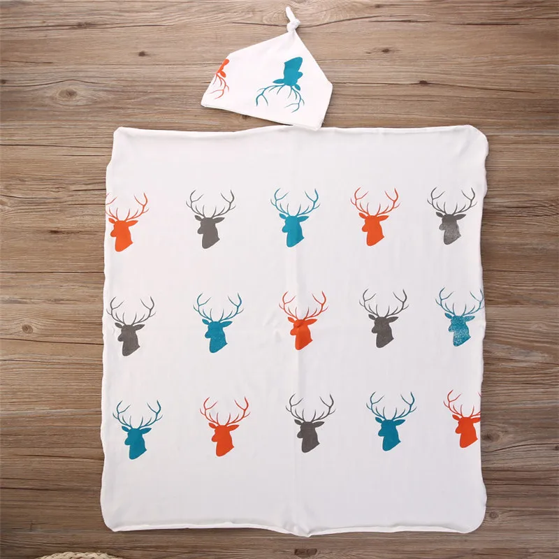 Одежда для маленьких мальчиков и девочек ясельного возраста одеяло с животным принтом мягкая пеленка для сна муслиновая шляпа с геометрическим рисунком, хлопковый комплект из 2 предметов