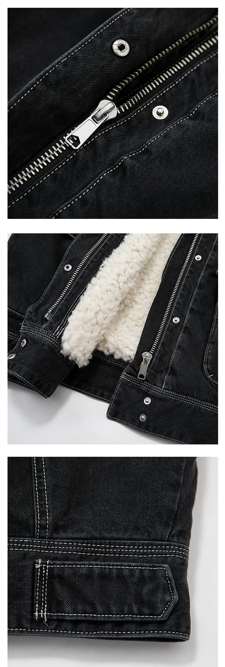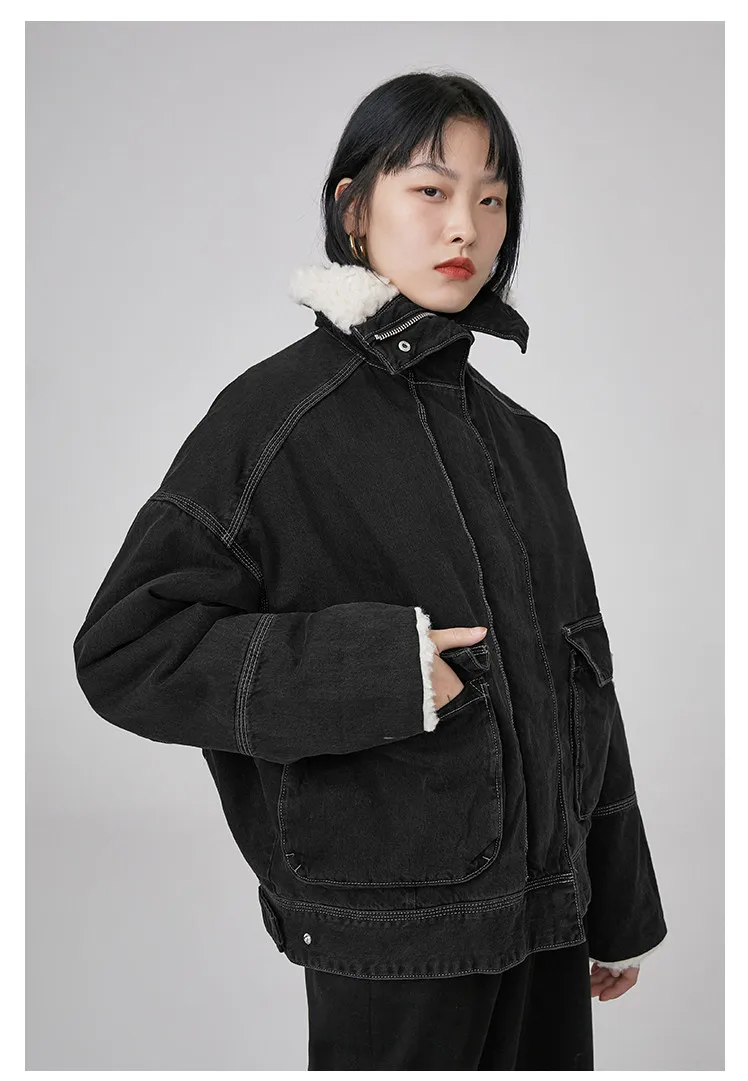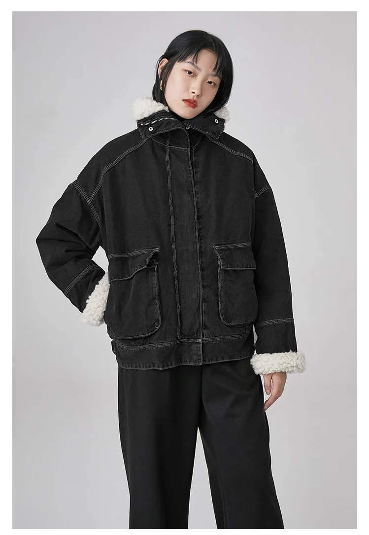 Женская короткая джинсовая куртка оверсайз, Повседневная Свободная черная утепленная куртка из овечьей шкуры, 2019 Ткань: 100% хлопок. Подкладка: подкладка из овчины Доступные цвета: черный. Доступные размеры: S,M,L Способ стирки: Обычный.