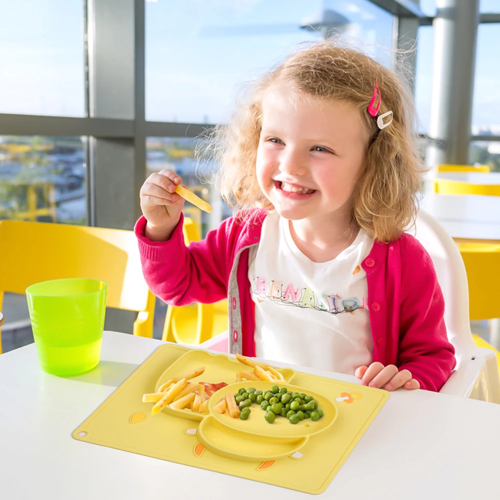 3 отдельных места для размещения различных продуктов питания, помогает ребенку питаться сбалансированной диетой.