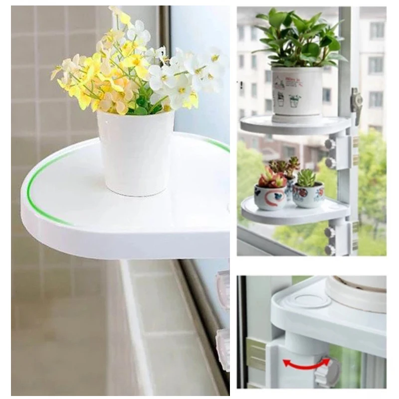 No-Drill Rotate Wall Shelf Plant Storage Flower Pot Rack Shelf Balcony Windows Storage Rack Flower Health DIY Wall Holder Decor