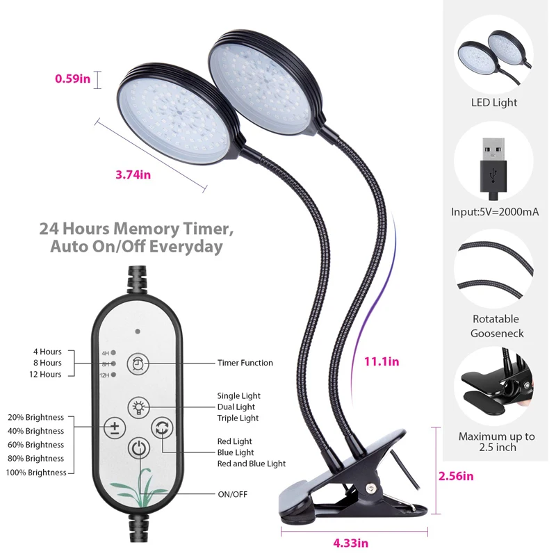 Водонепроницаемая лампа с тремя головками для синхронизации растений, циркулярная лампа, светодиодная лампа-трубка для роста растений 30 Вт 45 Вт с регулируемой яркостью для растений -Двусторонний таймер, Автоматическое включение/выключение:Это обновленная Функция синхронизации USB plug plant grow lamp, вы можете не только настроить его для освещения 4/ 8/12 часов,